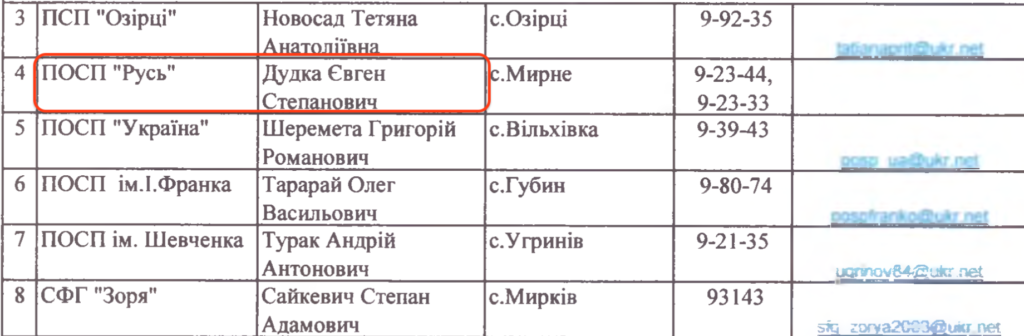 Шляхом елементарного пошуку в мережі Інтернет вдалося знайти докази підставності цих чуток. На сайті Львівського національного університету ветеринарної медицини та біотехнологій імені Ґжицького опублікований лист від Волинського управління агропромислового розвитку. Аграрні чиновники надсилають закладу освіти перелік підприємств області, що займаються тваринництвом. Навпроти сільськогосподарського підприємства «Русь», у графі «керівник підприємства», вказано прізвище Євгена Дудки. Хоча в офіційних реєстрах директором фірми значиться Валентин Вавринович.