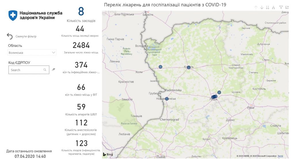 З початку квітня Міністерство цифрової трансформації України створило інструмент, який дає можливість відслідковувати заповненість медичних закладів та апаратів штучної вентиляції легень пацієнтами з коронавірусом.