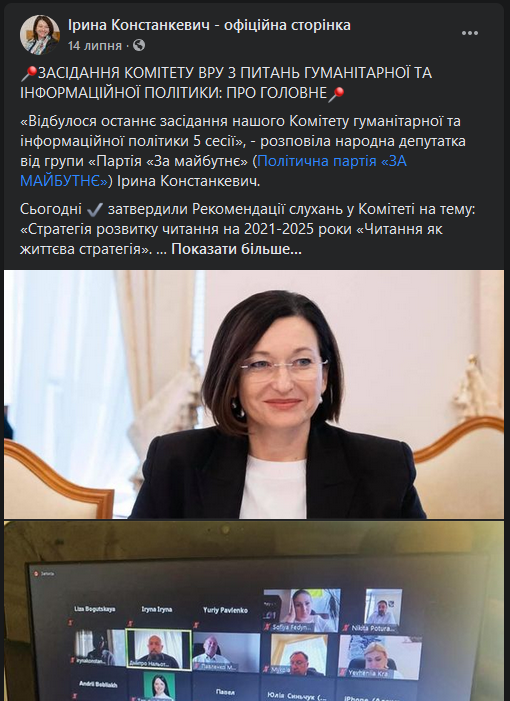 Народна депутатка Ірина Констанкевич відзначилася високою продуктивністю у підготовці проєктів законів, постанов, поправок до них, а також депутатських запитів і виступів на засіданнях за два роки роботи дев’ятого скликання Верховної Ради. Також вона має високі показники щодо відвідування пленарних засідань, голосування, а також участі у роботі комітету.