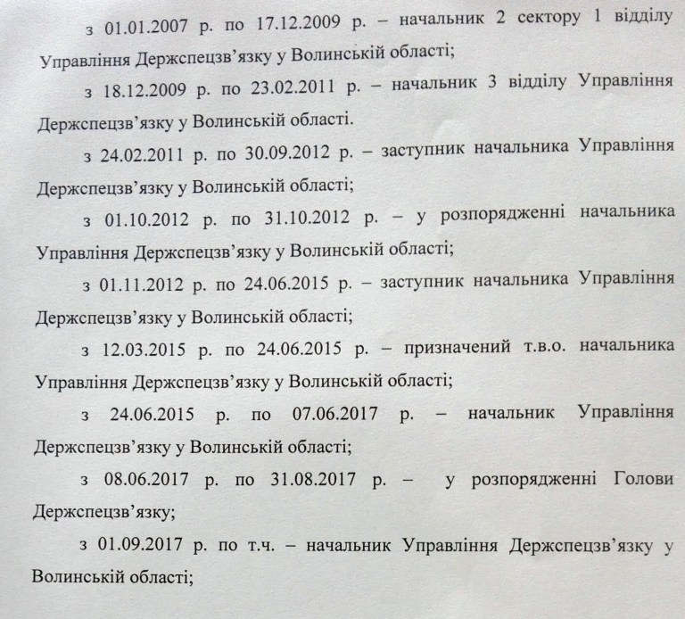 У 2017 році начальник управління Держспецзв’язку отримав 207,7 тисяч гривень зарплати, його дружина – 132,7 тисячі гривень.