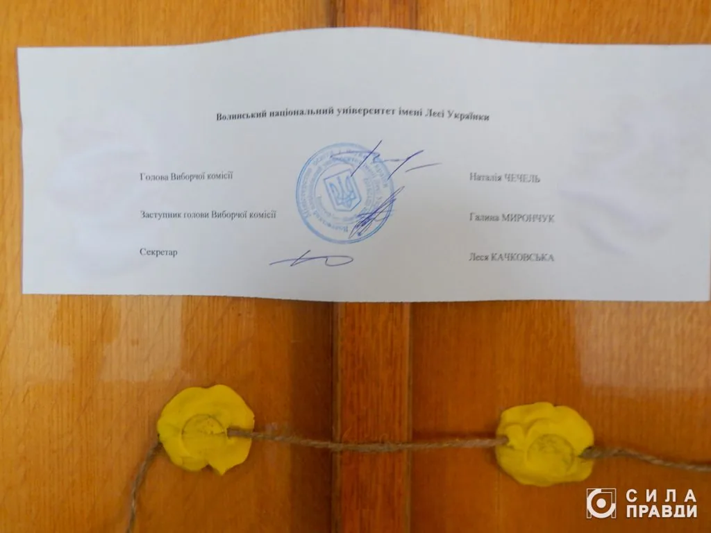 «За результатами підрахунку голосів перемогу одержав Цьось Анатолій Васильович. Вітаємо Анатолія Васильовича з обранням на посаду ректора Волинського національного університету імені Лесі Українки».