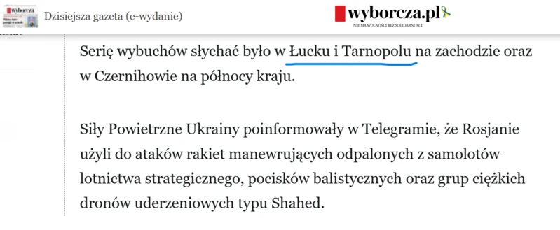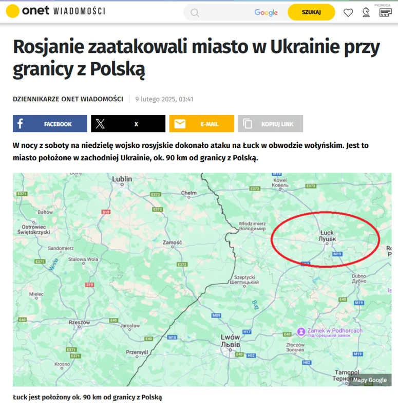 У видання Wprost у новині про атаку на Луцьк в заголовку зазначили, що Росія атакувала біля польського кордону. А на сайті «Оnet Wiadomosci» у новині про атаку Росії розмістили карту із позначкою Луцька, щоб показати розташування міста територіально та уточнили відстань до Польщі.