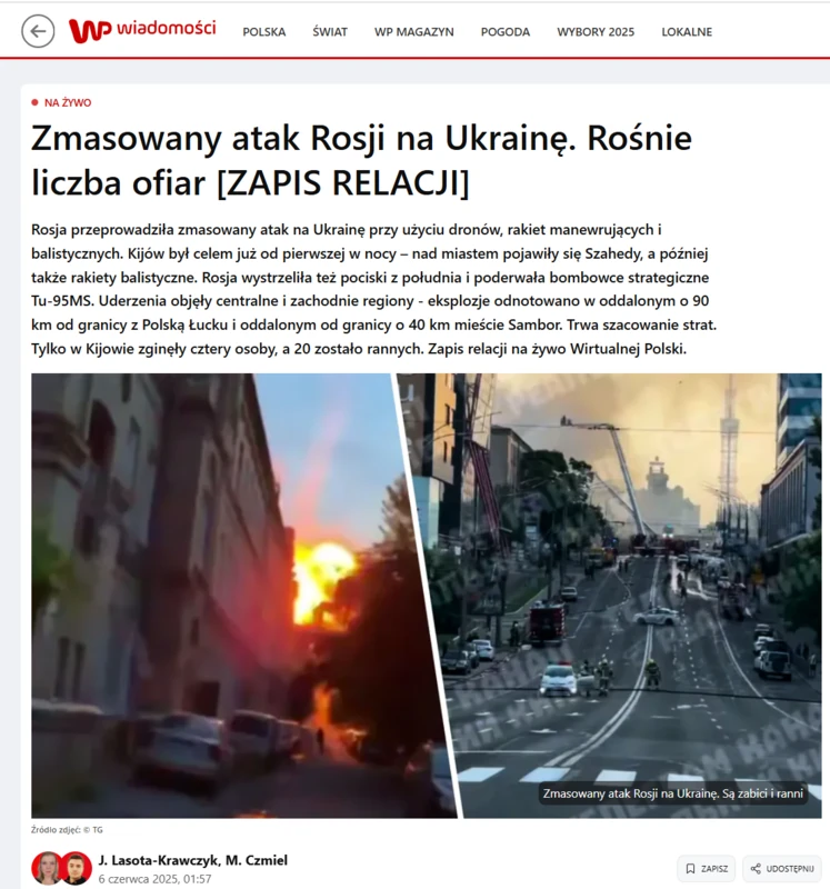 На сайті одного з провідних видань «Gazeta Wyborcza» є дайджест новин за 6 червня. Тут також опублікована інформація про вибухи в Луцьку та у Тернополі.