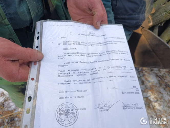 Як розповів на місці один із робітників, пиляти дерева та розвозити їх бюджетним установам на дрова для опалення – це вказівка сільської ради.