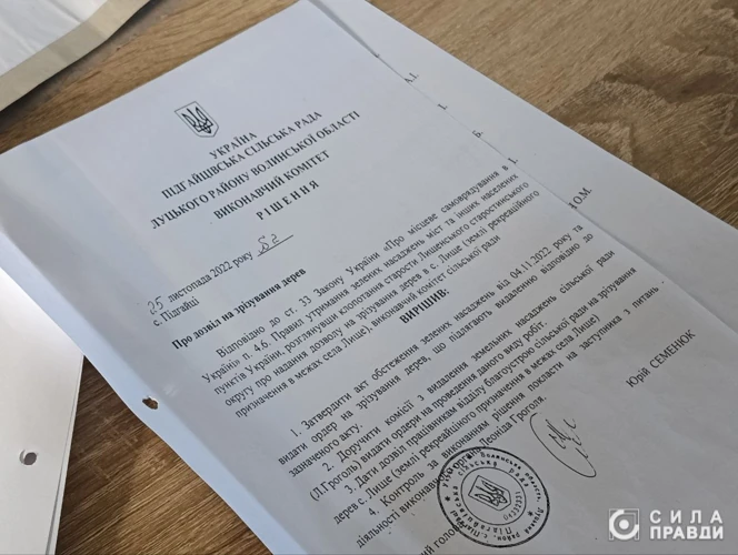 Зі слів керівника відділу благоустрою Підгайцівської сільської ради Валерія Кузьмича, рішення про знесення дерев, як аварійних, ухвалив виконком сільської ради ще 2022 року. Згідно з документами, видаленню підлягає 259 дерев, які ростуть на території військового містечка.