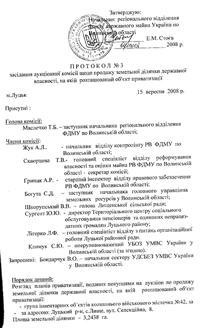 Продане з аукціону майно та 3,24 га, які були закріплені за будівлями, повернулися у розпорядження Луцької райдержадміністрації, а 17,4 гектари – в комунальну власність Лищенської сільської ради.