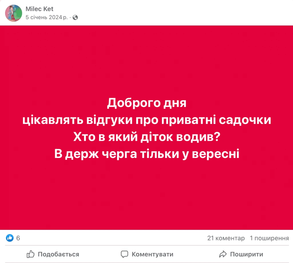 У соціальних мережах лучани часто питають поради щодо того, у який приватний садочок віддати дитину, адже у державні черги розписані на декілька років уперед.