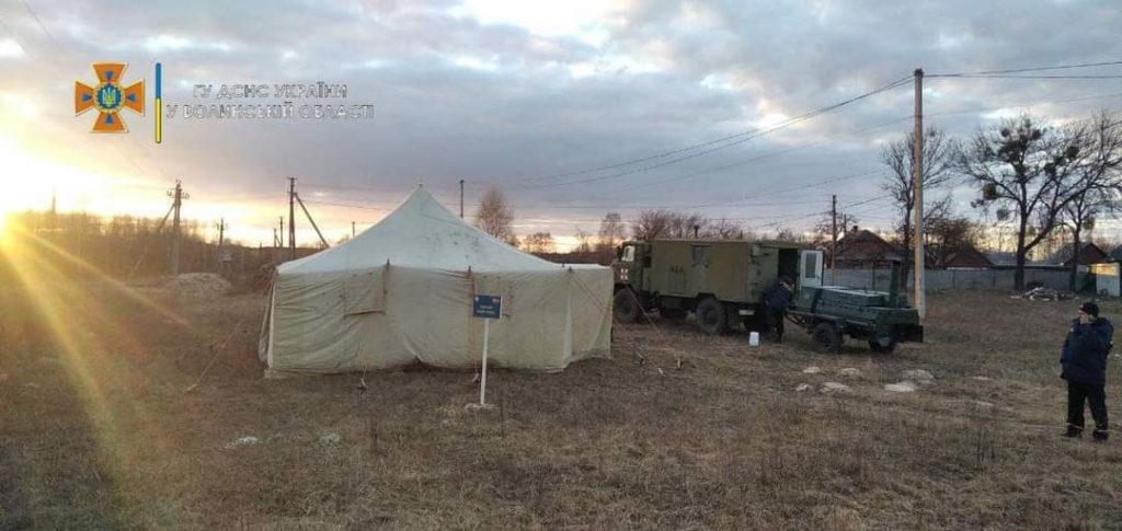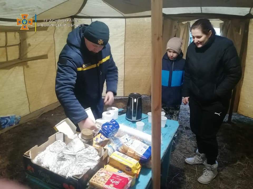 20.00 год. Волинські рятувальники спільно з органами влади розгорнули пункт життєзабезпечення у Ковельському районі на кордоні Волині з Польщею для надання допомоги людям, які вимушені залишити свої домівки через війну. Намет ДСНС розгорнутий біля дороги поблизу кордону у Ковельському районі.