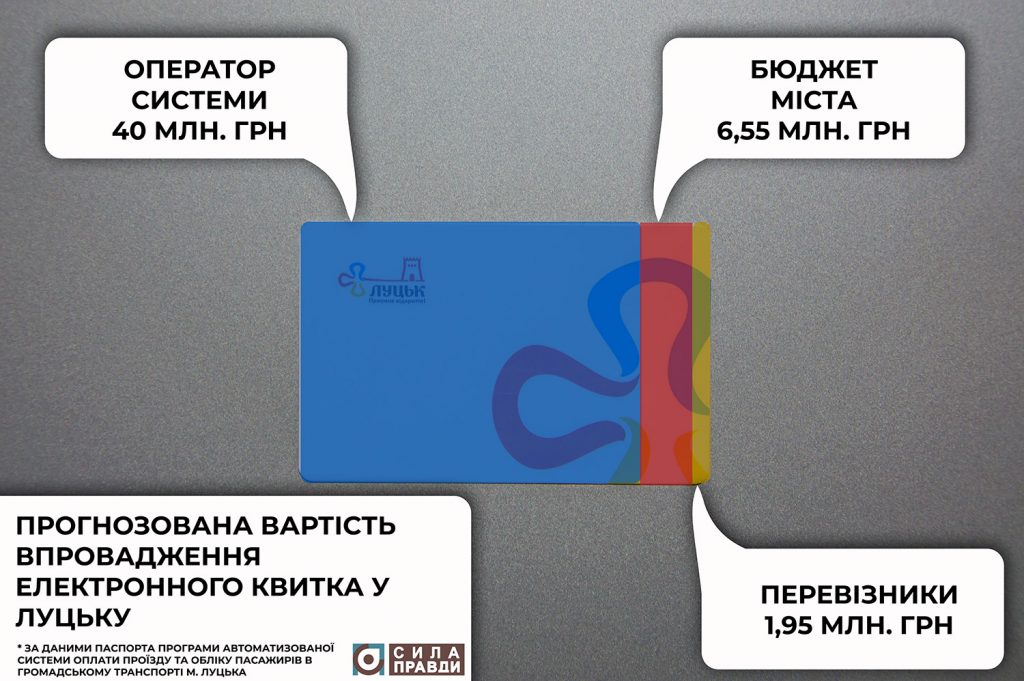 Усе це «Сіті кард систем» забезпечує за власний рахунок. У скільки це все обійдеться оператору – в договорі не прописано. Міськрада повинна лише відшкодувати виготовлення електронних квитків для пільговиків. За словами начальника управління транспорту та зв’язку Луцькради Володимира Степанова, на це й передбачили в програмі 6,5 мільйонів гривень.