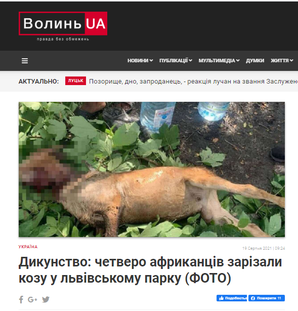 Хоч новина стосується Львова, та волинський сайт також її поширив. І якщо більшість медіа написали, що це зробили іноземці, то на цьому сайті в заголовок новини винесене уточнення, хто скоїв правопорушення. До того, заголовок підсилений словами з негативним емоціональним забарвленням «дикунство» і «африканці».