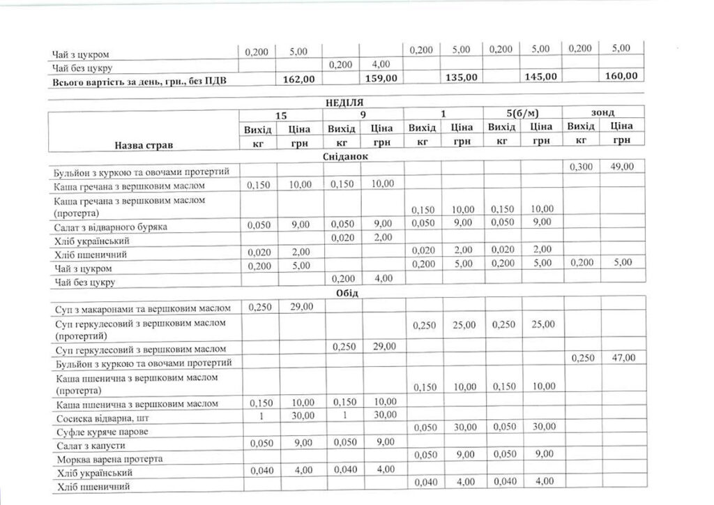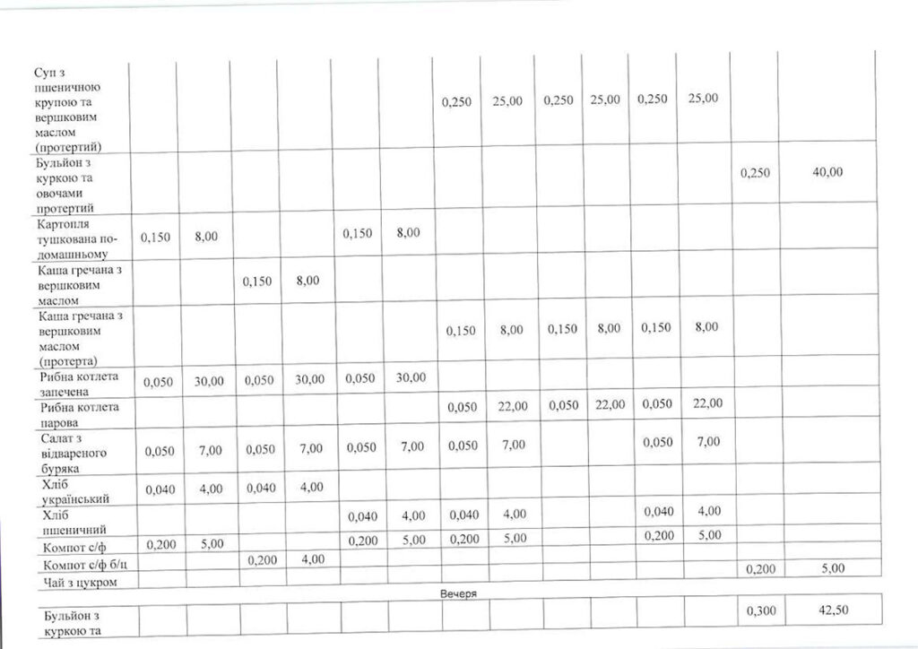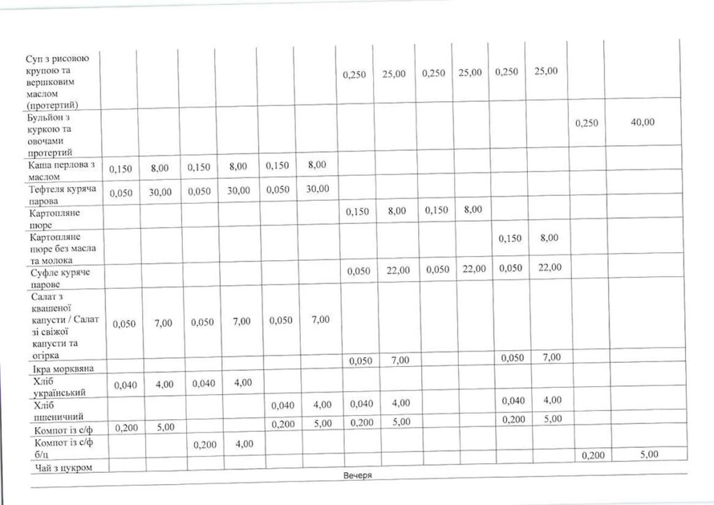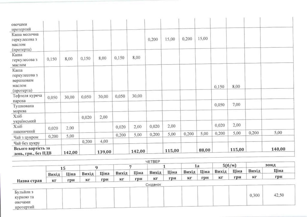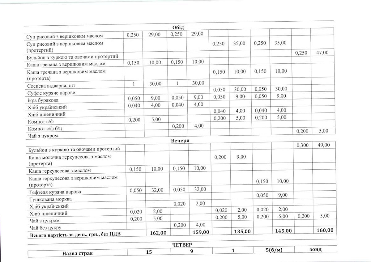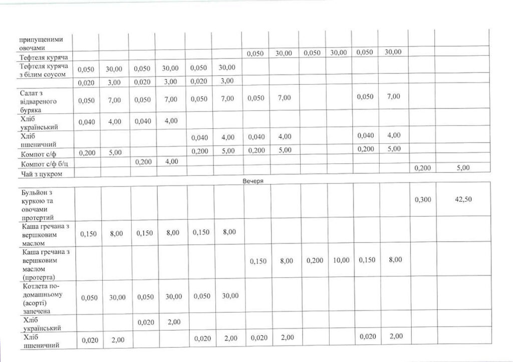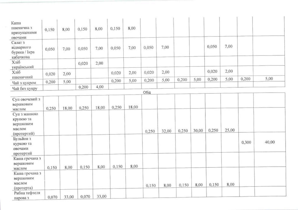 У відділенні реабілітації медобʼєднання розраховують харчування на 20 тисяч 700 ліжко-днів, а середня вартість одного – 158,18 гривні. Ліжко-дні мають різну вартість залежно від дієти пацієнта. Найдешевший здебільшого сніданок, найдорожчий – обід.