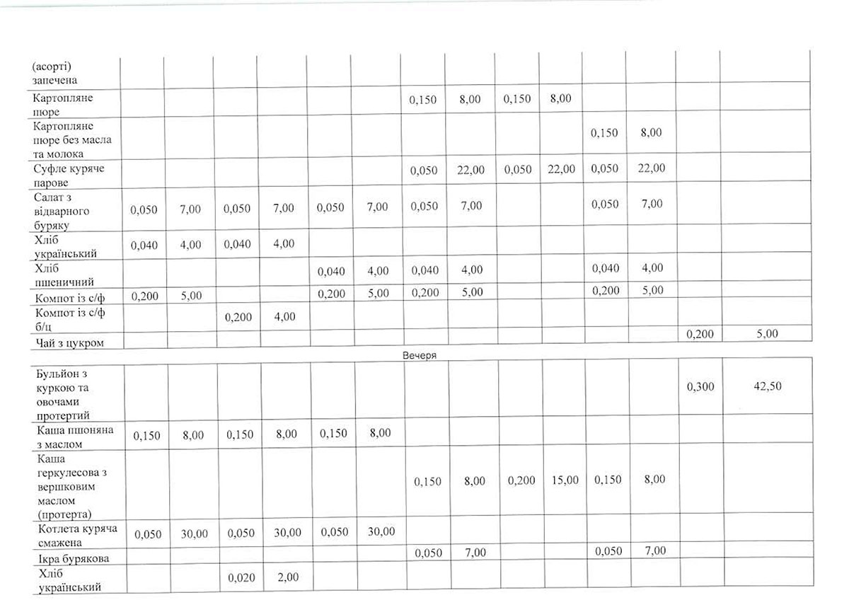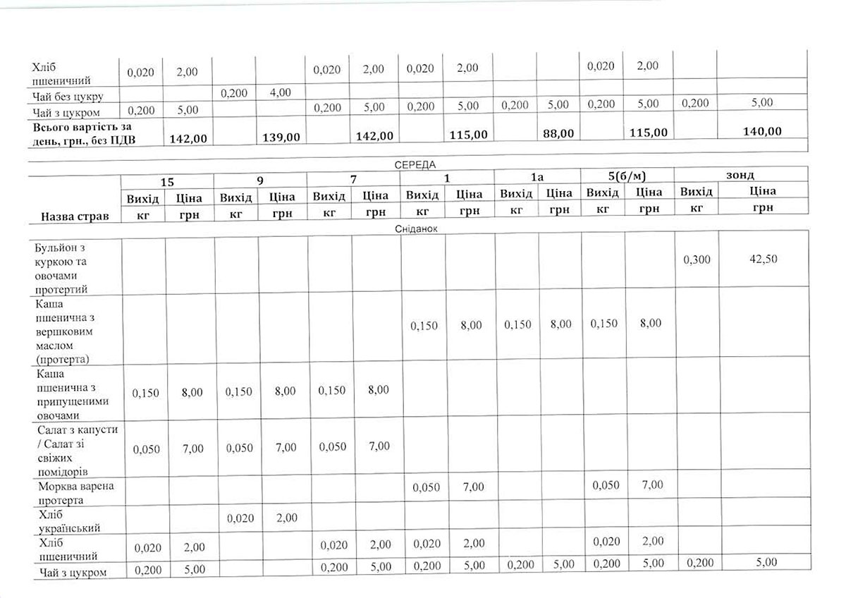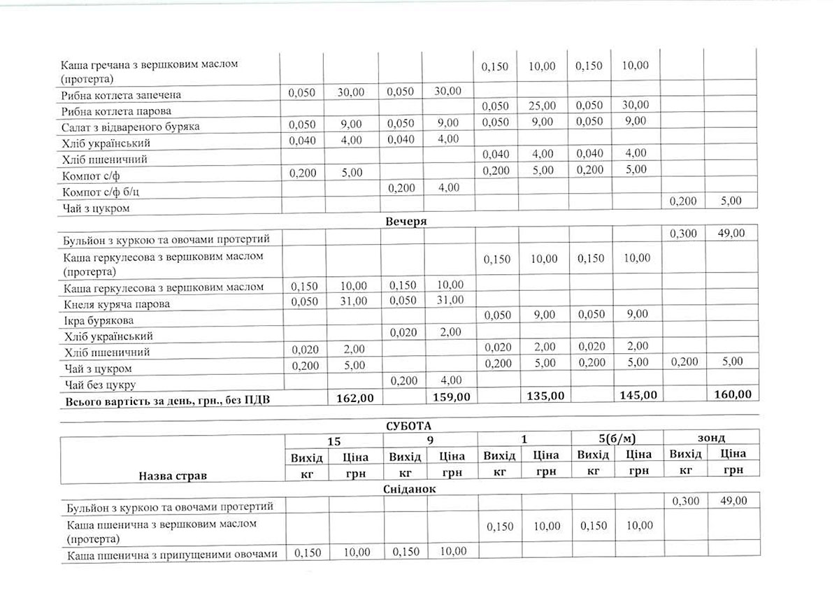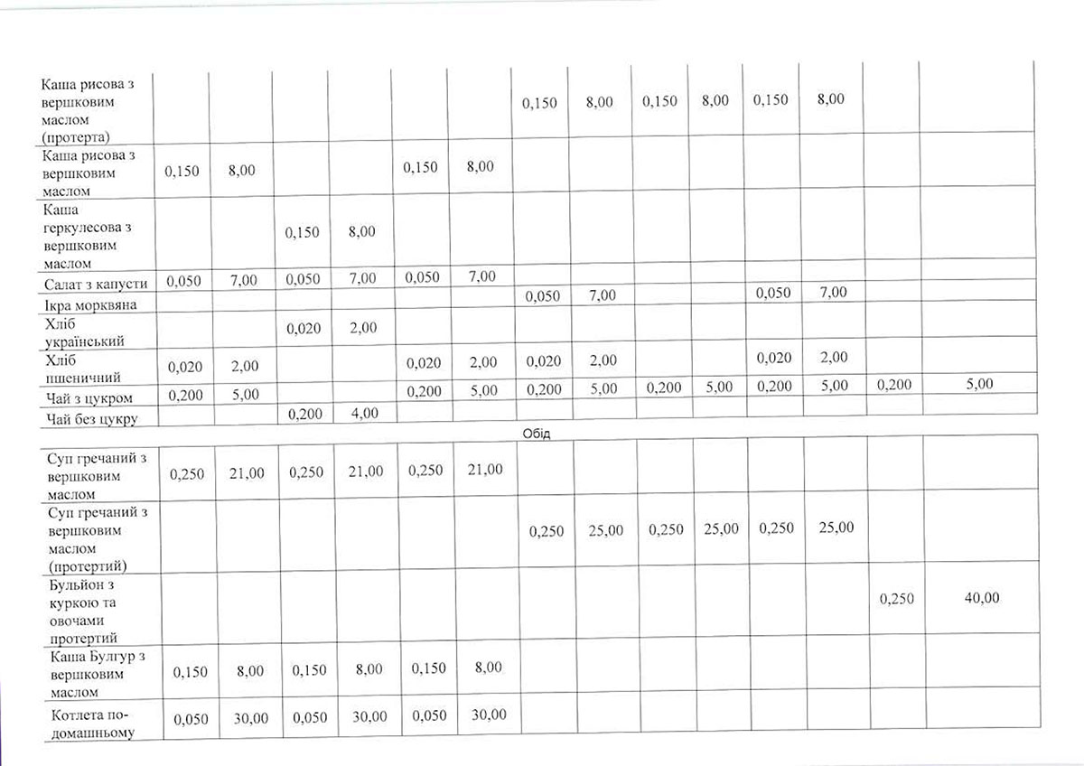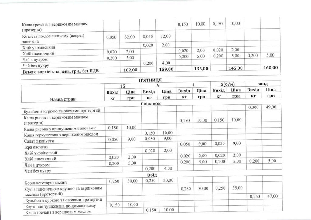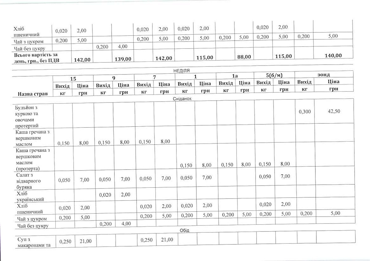 У відділенні реабілітації медобʼєднання розраховують харчування на 20 тисяч 700 ліжко-днів, а середня вартість одного – 158,18 гривні. Ліжко-дні мають різну вартість залежно від дієти пацієнта. Найдешевший здебільшого сніданок, найдорожчий – обід.