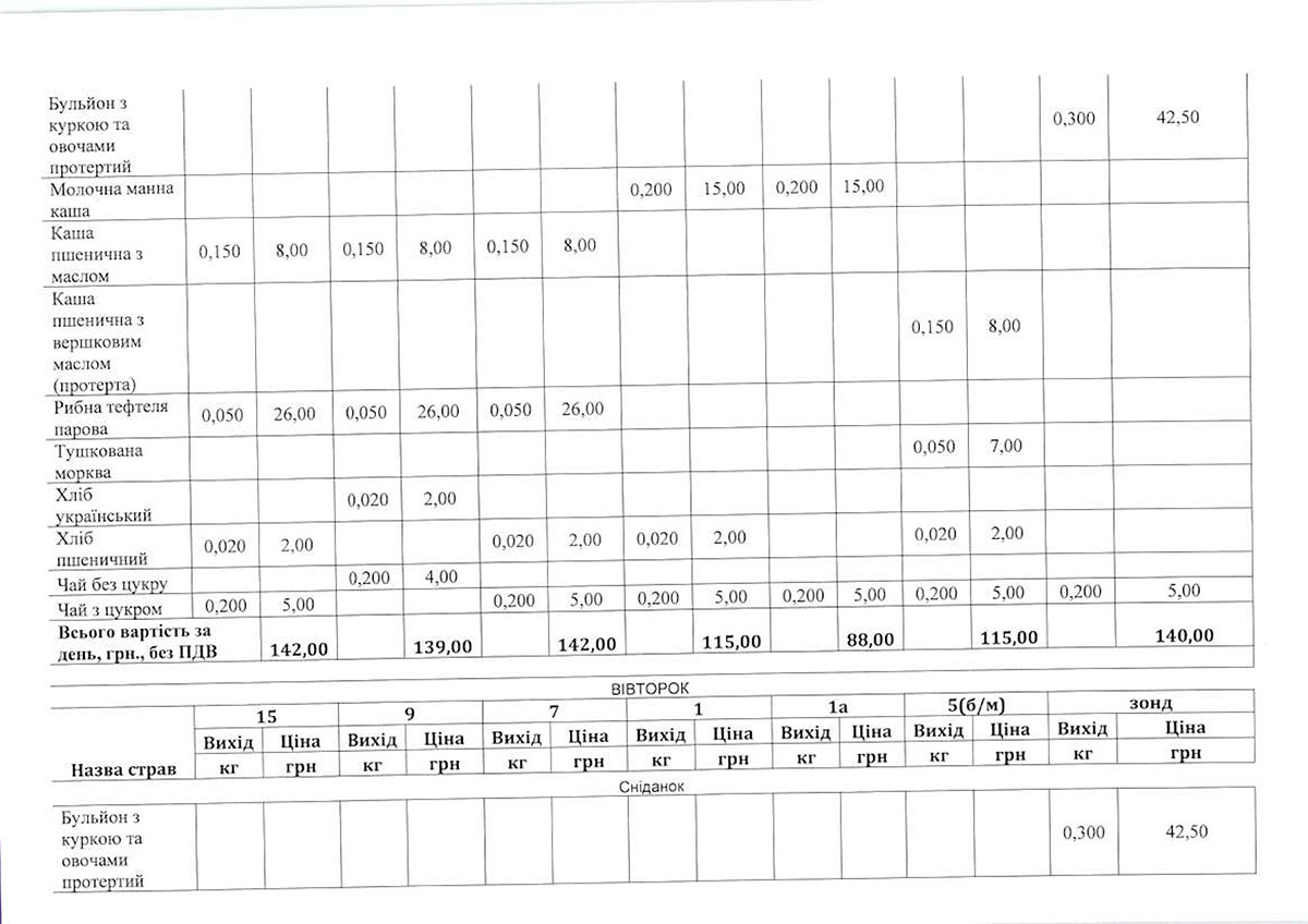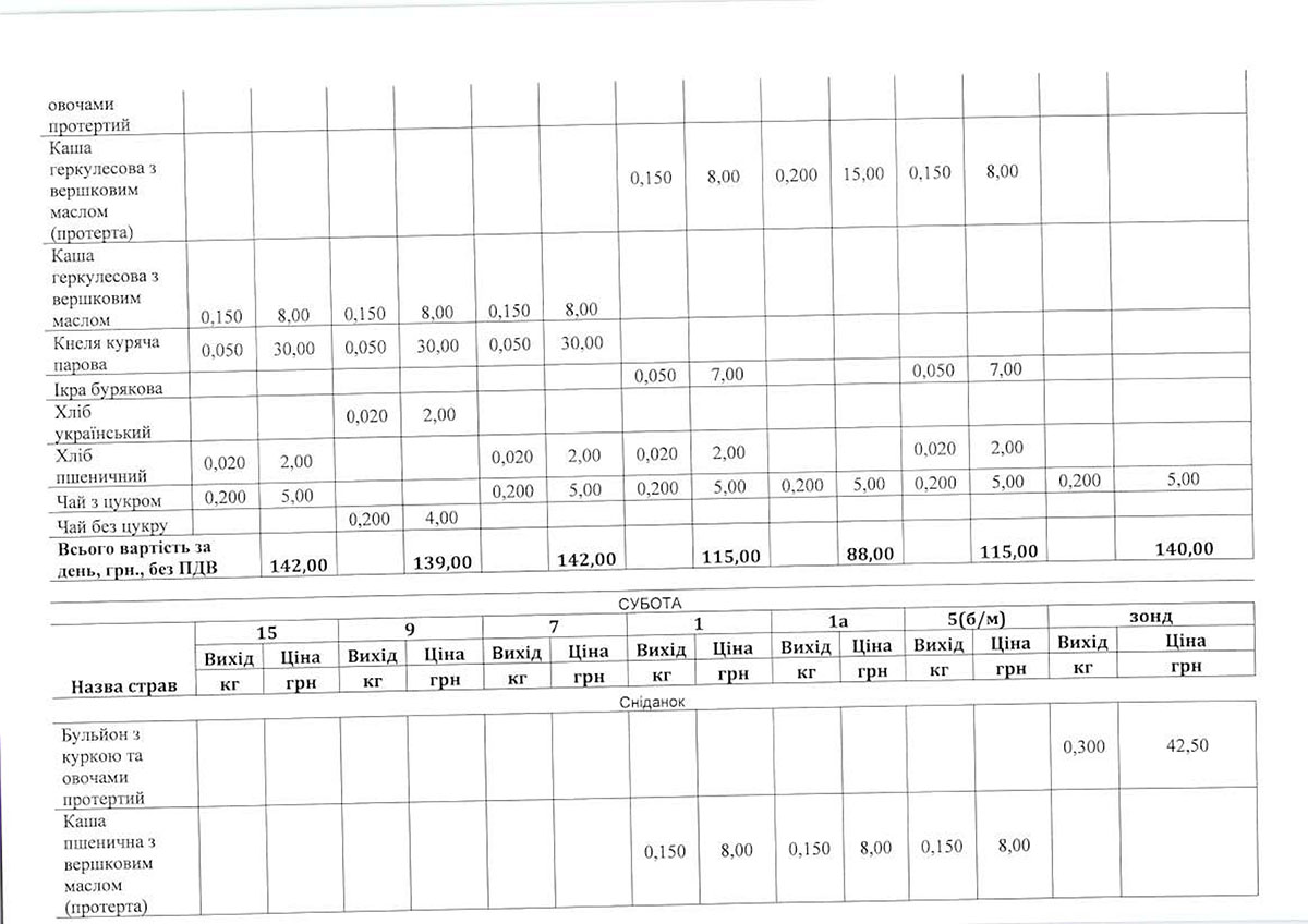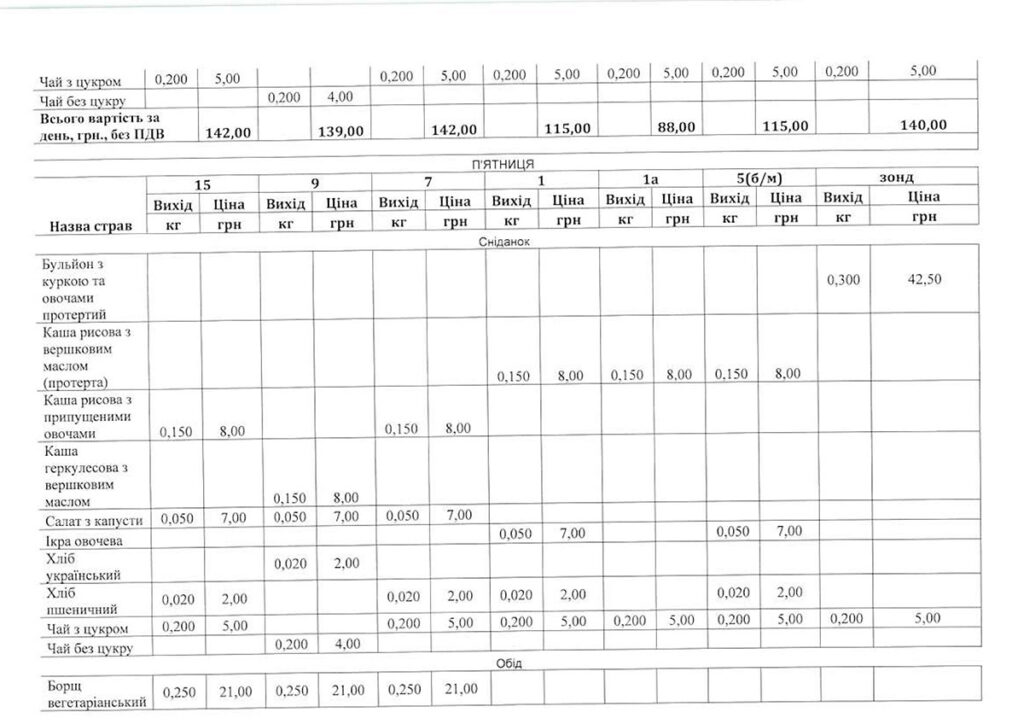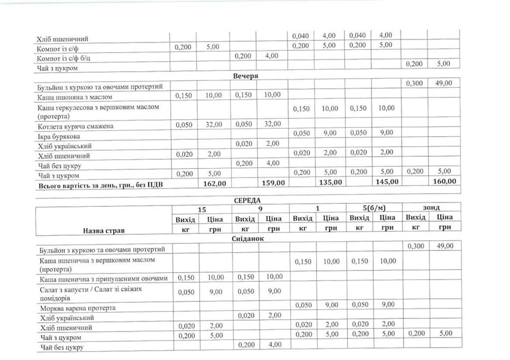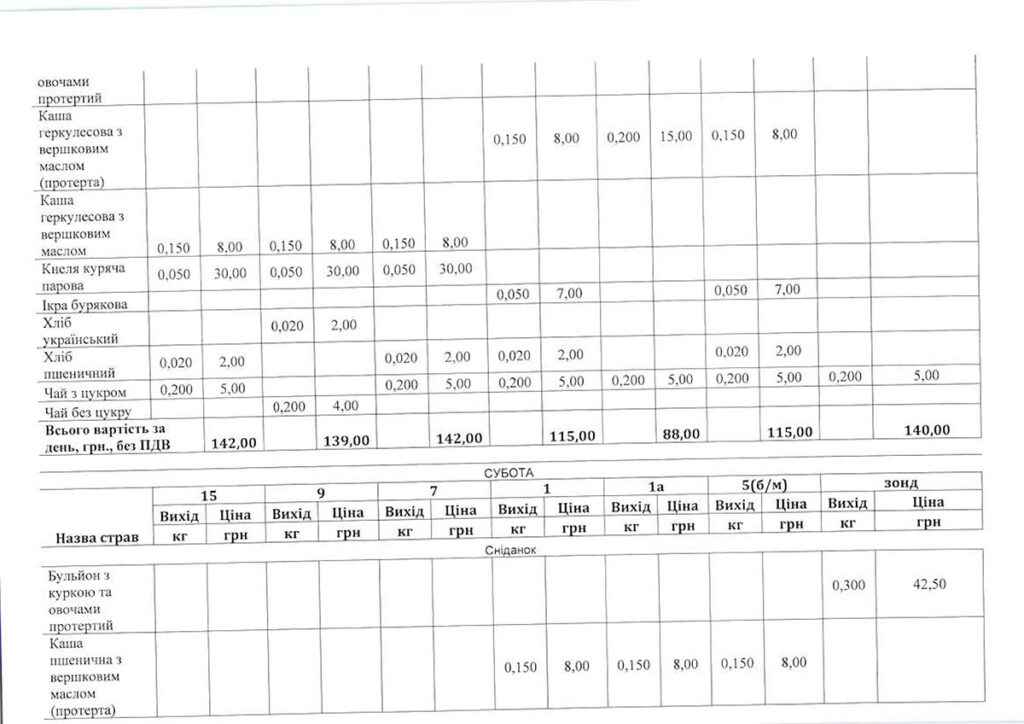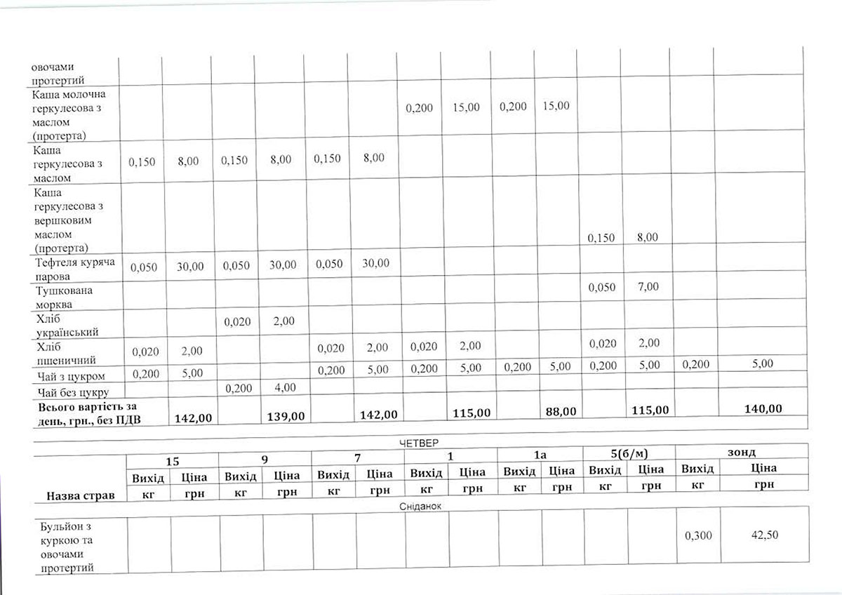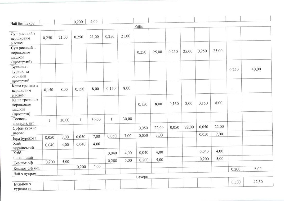 У відділенні реабілітації медобʼєднання розраховують харчування на 20 тисяч 700 ліжко-днів, а середня вартість одного – 158,18 гривні. Ліжко-дні мають різну вартість залежно від дієти пацієнта. Найдешевший здебільшого сніданок, найдорожчий – обід.