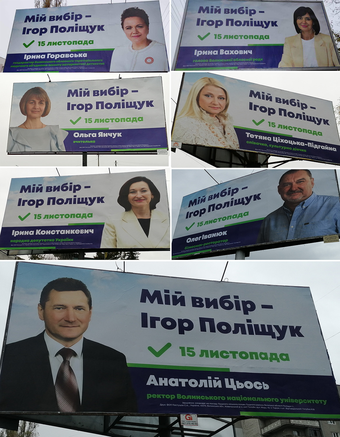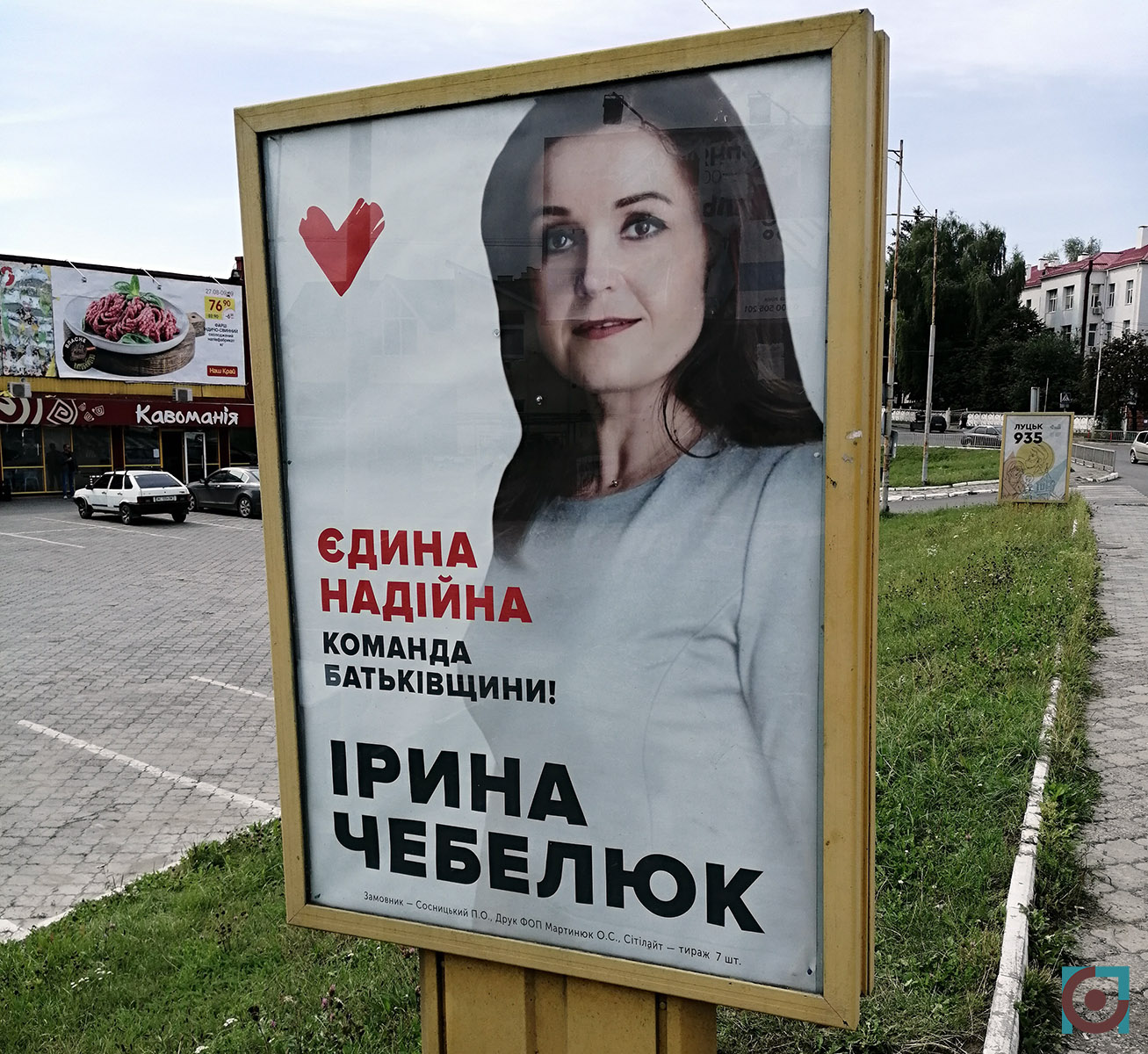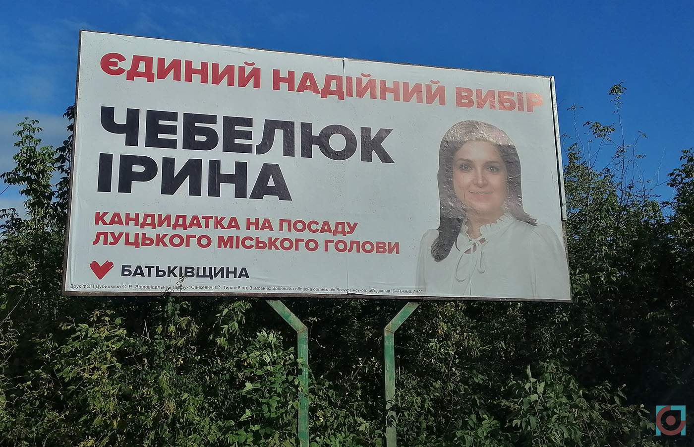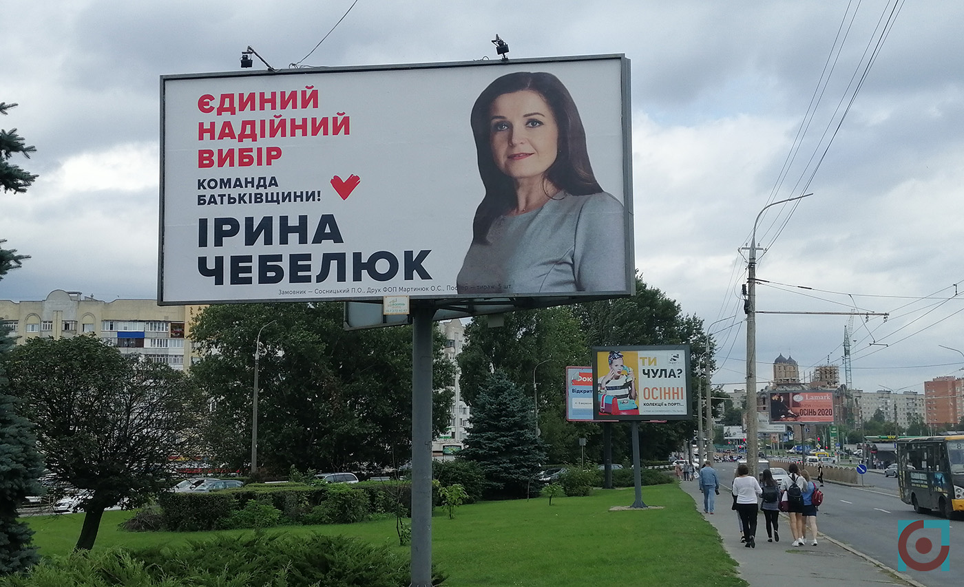 Згодом Ірина Чебелюк дивилась на лучан з 6 бордів як кандидатка в депутати від ВО «Батьківщина», а з 21-го – як кандидатка на посаду Луцького міського голови. Також з’явилося 26 сітілайтів із її зображенням.
