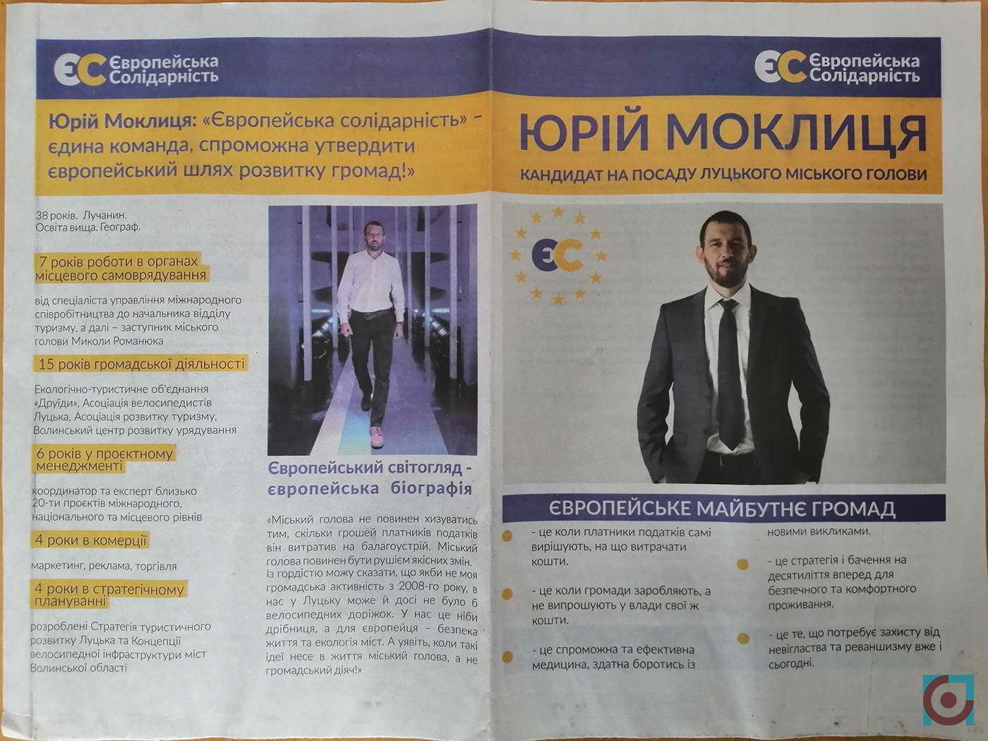 Висуванець політичної партії «Європейська солідарність» Юрій Моклиця з 2015 до 2017-го був заступником Луцького міського голови. Коли проукропівська більшість прийшла до влади, він подався в громадську діяльність – став виконавчим директором громадської організації «Волинський центр розвитку урядування».