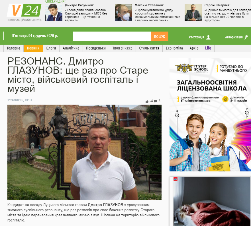 Схоже, Дмитро Глазунов придбав так званий абонемент на розміщення агітації у виданні «Волинь24», яке з дня в день писало про кандидата без жодного маркування політичної реклами. Деякі публікації дублювались на сайті «Район.Луцьк» з хештегом #Реклама в кінці тексту.
