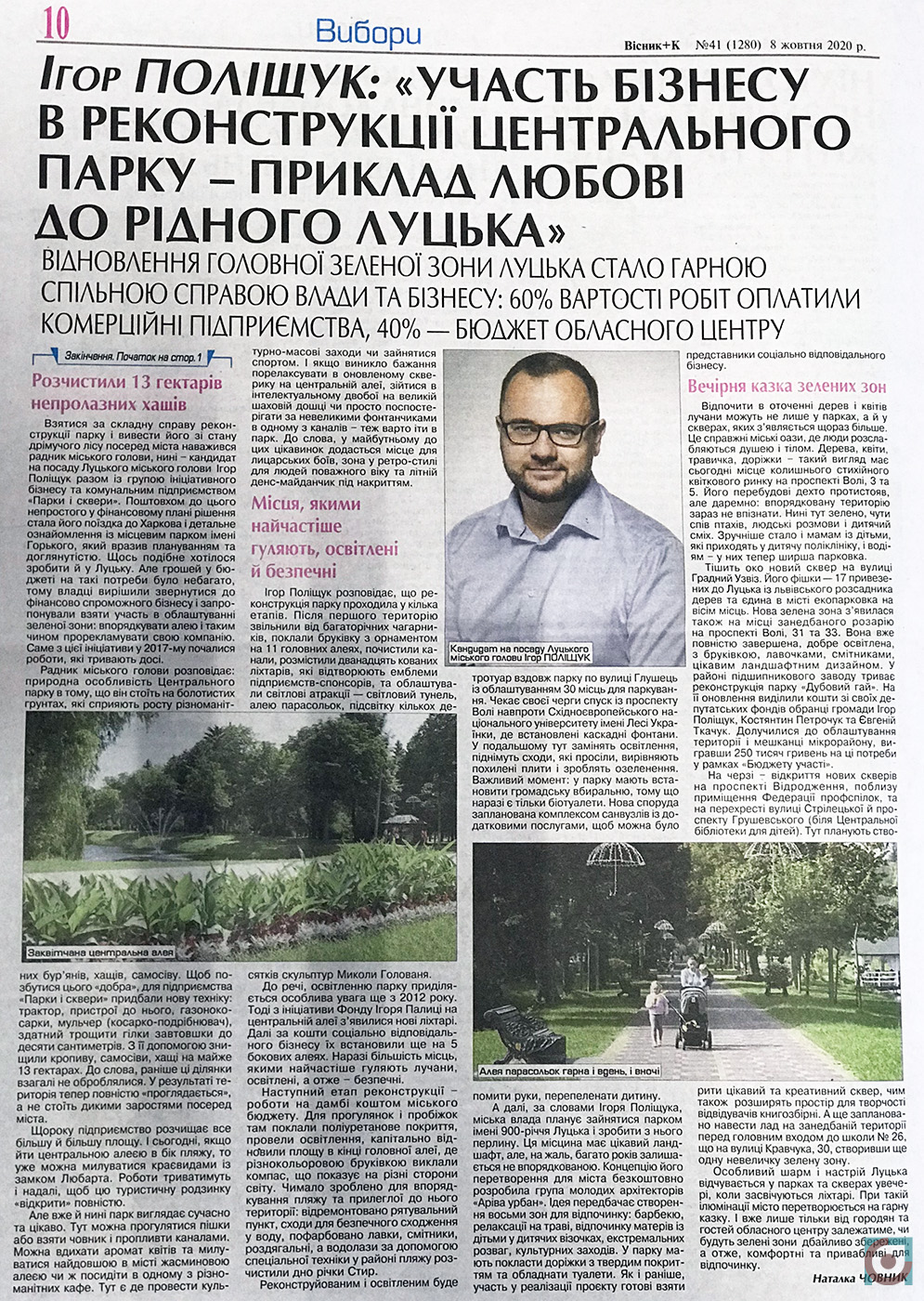 Що цікаво, у часи роботи юрисконсультом тоді ще Фонду Ігоря Палиці «Новий Луцьк» Ігор Поліщук був номінальним власником 50% акцій «Волинських новин». Тоді у 2013-му поява його, як людини Ігоря Палиці, серед власників медіа ознаменувалася редакційним конфліктом, після чого звільнилася значна частина редакції, а директором компанії став нинішній розпорядник виборчого фонду Ігоря Поліщука на виборах 2020 року Максим Голубєв. Попри те, що «Волинські новини» про Ігоря Поліщука пишуть або добре, або нічого, впродовж виборчої кампанії їм за рекламу заплатили лише трохи більше 44 тисяч гривень.