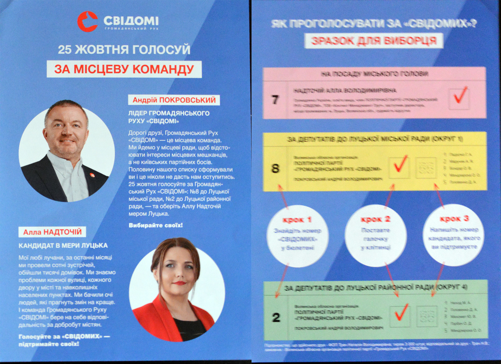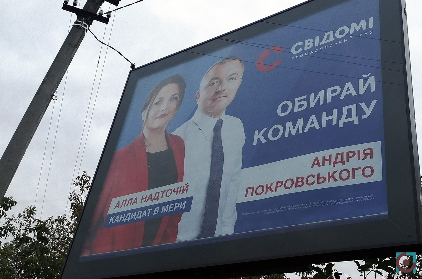 «Сила правди» нарахувала у Луцьку 15 білбордів з зображенням Алли Надточій, де зазначалося, що вона є кандидаткою на посаду міського голови, а також 4 скроли з тим же сюжетом, однак із вказаним тиражем у 2 штуки.