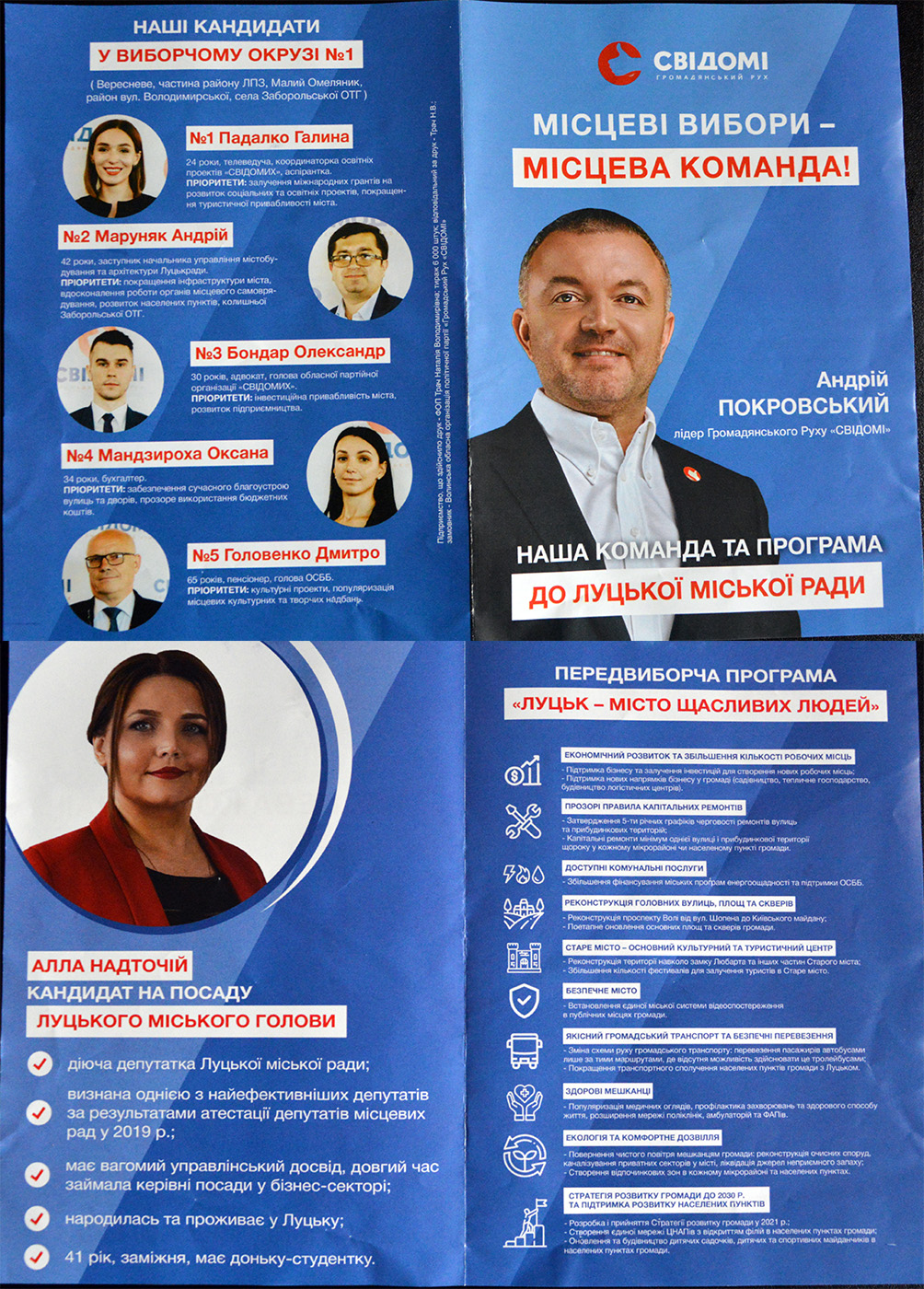 «Нема такого зобов’язання відкривати кандидату окремий виборчий фонд. Окремої агітаційної продукції для мене не створювалось, тому не було потреби створювати окремий виборчий фонд. Все, що робили, то було спільно з командою Громадянського руху «Свідомі», – сказала чинна депутатка новообраної Луцькради.