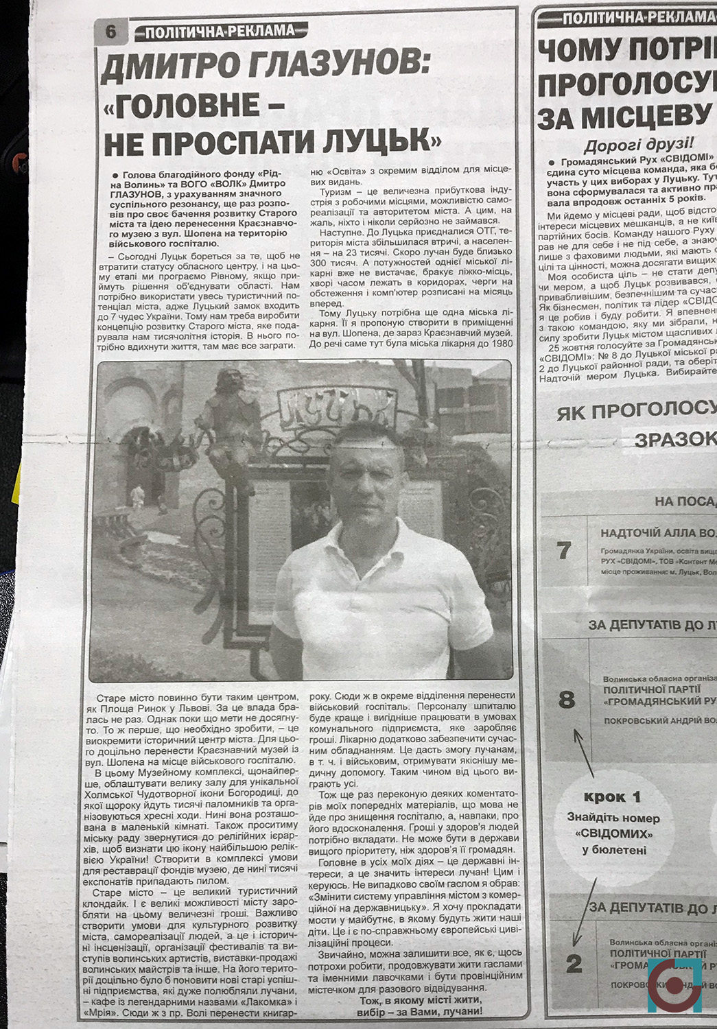 «Нас люди підтримали, молодь. Я нарахував в один день у нас на різних куточках Луцька роздавали пресу 50 чоловік. Богдан Павлович фінансує Молодіжний центр Волині. Там є свідома молодь, яка приходила і пропонувала свою допомогу, підприємці центрального ринку теж включилися в цей процес»