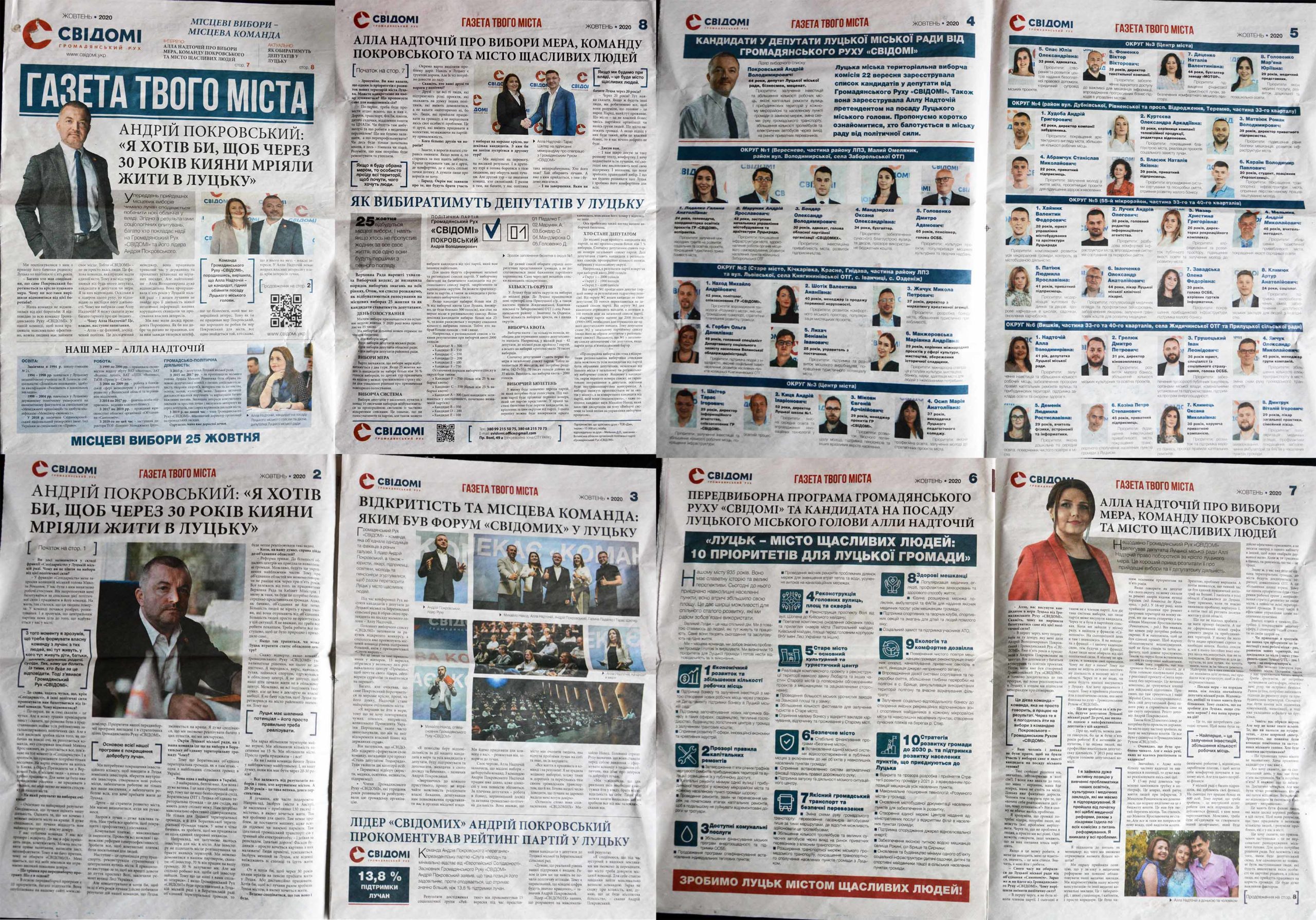 На рекламу у ЗМІ «Свідомі» витратили майже 100 тисяч гривень. Половину цієї суми оплатили телеканалу «UA Волинь» Національної суспільної телерадіокомпанії України. Також сюди увійшла агітація на різних радіо («Люкс ФМ», «Наше радіо», «Хіт ФМ», «Релакс») – трохи більше 5 тисяч гривень.