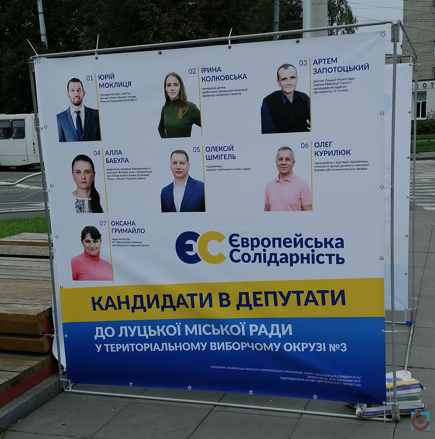 Разом з тим, у місті було розміщено кілька десятків оголошень на білбордах із символікою партії «Слуга народу» та написом «Луцьк – це ти!» Схоже, що цю рекламу оплатили в рамках кампанії до обласної ради. В такий же спосіб обійшлася політсилі і реклама у Фейсбук – кандидати зі списку до міської ради фігурували в рекламних роликах хоча і не активно.