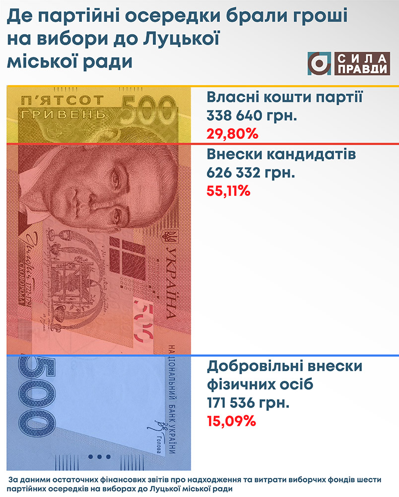 «Сила правди» проаналізувала, хто саме із кандидатів та жертводавців фінансував виборчі кампанії партосередків до Луцької міськради.