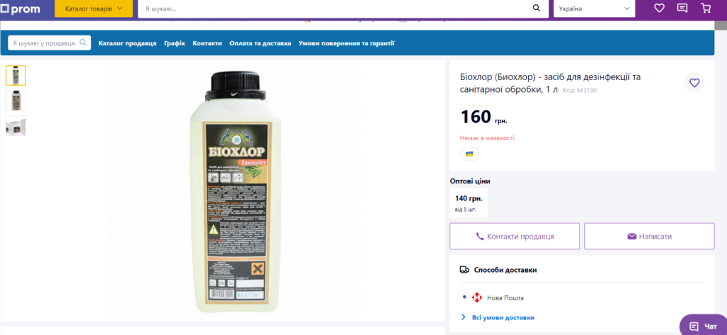 Зокрема, йдеться про закупівлю рідкого дезінфікуючого засобу ТМ «Біохлор» та дезінфекційних таблеток «Хлорель» загальною вартістю понад 1,3 мільйона гривень.