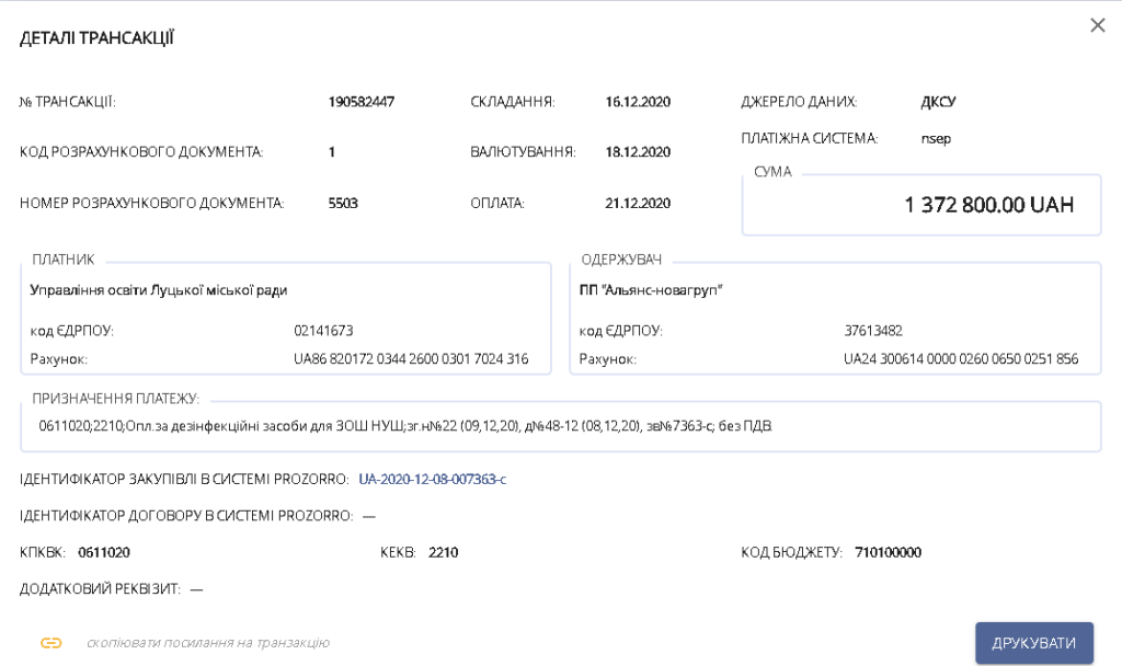 Оголошення про закупівлю управління освіти оприлюднило 8 грудня 2020 року, цього ж дня у системі закупівель «Prozorro» опублікували укладений договір.