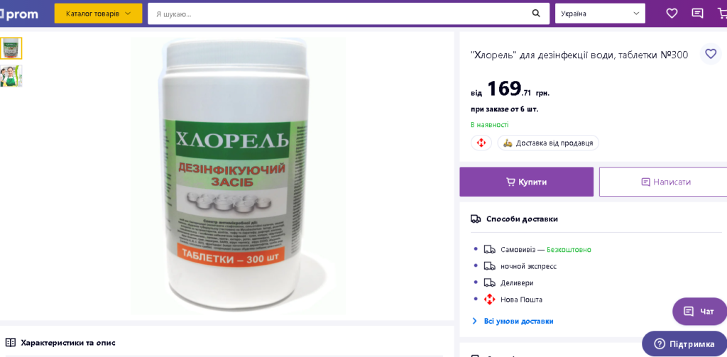 За пошуком дезінфікуючих таблеток «Хлорель» мережа інтернет пропонує сайт Prom.ua, де такий товар продає компанія «Феліцата Україна». Також фірма продає ці засоби і на своєму сайті. Засіб містить такі ж характеристики та дозування, як і вказано в оголошенні управління освіти про закупівлю. А ціна вказаного товару залежить від обсягу замовлень – при замовленні від шести упаковок ціна однієї упаковки становить 169,71 гривню (станом на середину січня).