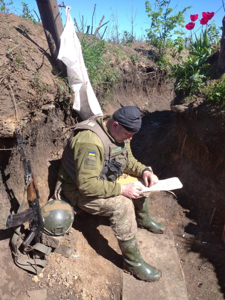 Чимало текстів про те, як рятував щенят. Десь з укропу їх витягував. Мені захотілося це все описувати. Окрім того, в окопному зошиті є про перші емоції, які будуть після війни. І це є дуже важлива річ на сьогоднішній день.