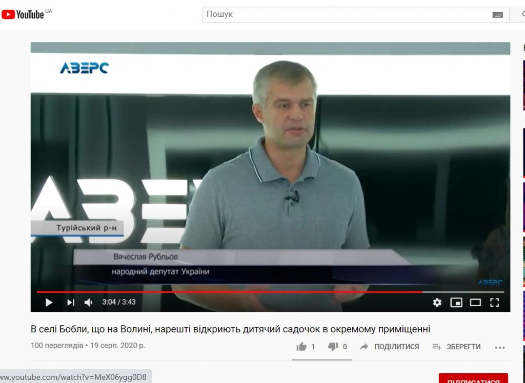 «Коли ми залучали кошти на дитячий садочок залучили депутата Верховної Ради теперішнього Рубльова Вячеслава Володимировича, який взагалі допомагає не тільки дитячому садочку», – каже голова Турійської районної ради Сергій Власюк.