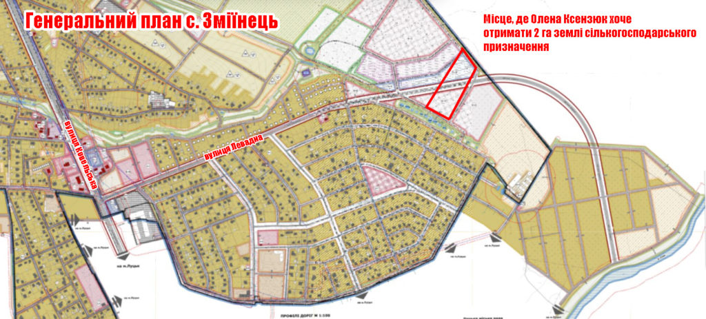 З огляду на це, правонаступниця Княгининівської селищної ради – Луцька міська рада – подала апеляційну скаргу на рішення Волинського окружного адміністративного суду, обгрунтувавши її тим, що наділ, який хоче отримати Олена Ксензюк, належить до земель комерційного, а не сільськогосподарського призначення. За генеральним планом села Зміїнець, тут запроєктовано об’їздну дорогу, АЗС і станцію технічного обслуговування.