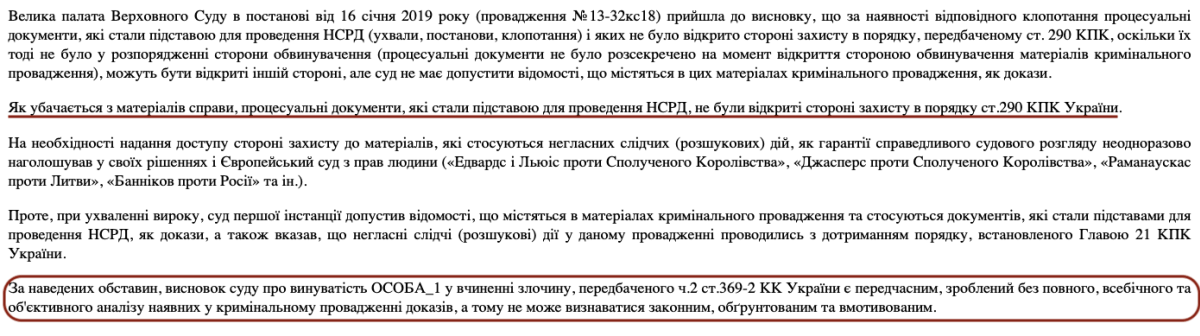 Але судді дали справі інший поворот. Головуючий Олег Клок вказав на те, що на стадії досудового розслідування стороні захисту не були відкриті матеріали негласних слідчих дій, що, на думку суду, позбавило екс-чиновника права на справедливий судовий розгляд.