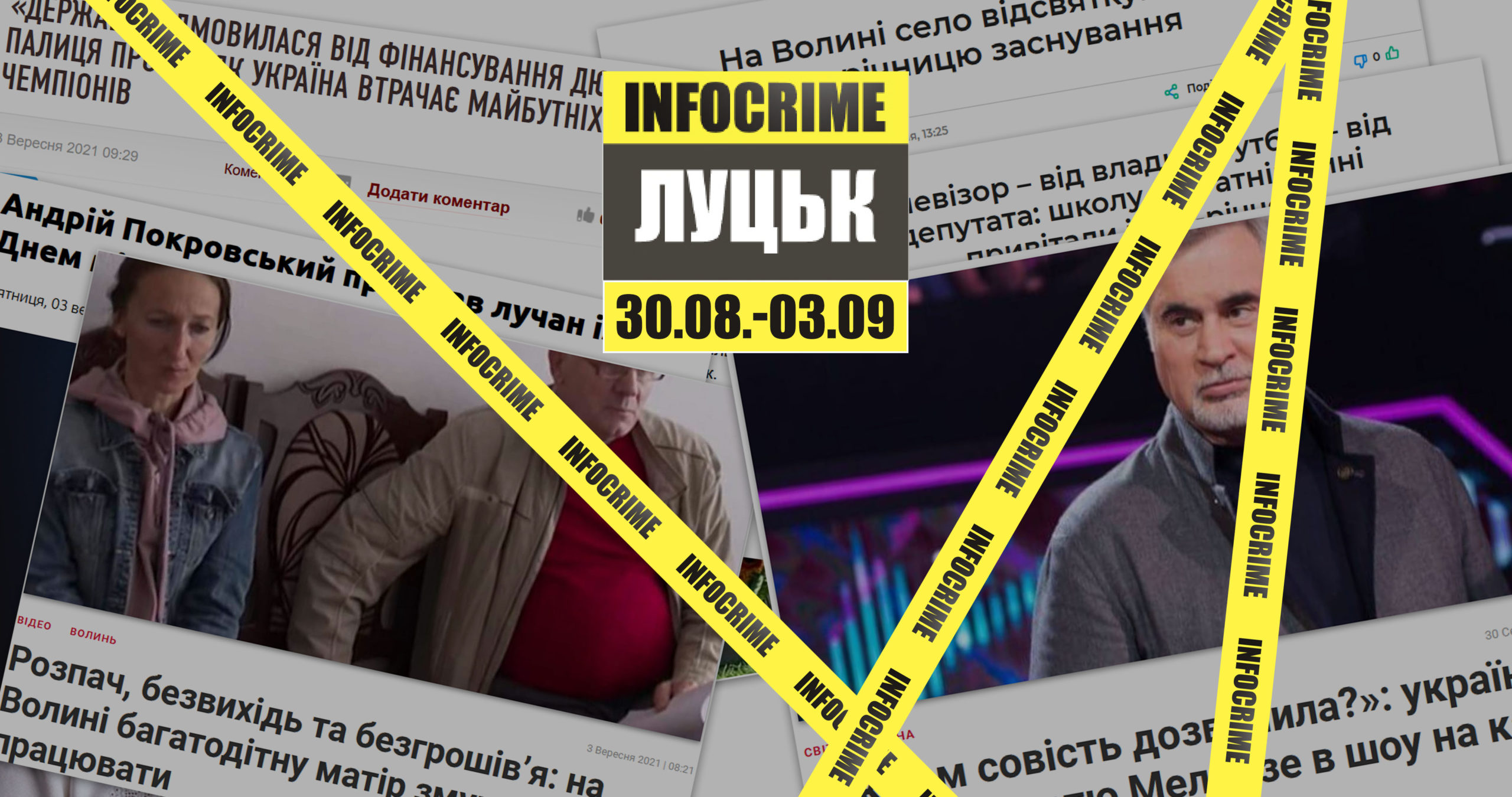 Період моніторингу – 30 серпня – 3 вересня 2021 року, наша сторінка у Facebook: https://www.facebook.com/infocrimelutsk
