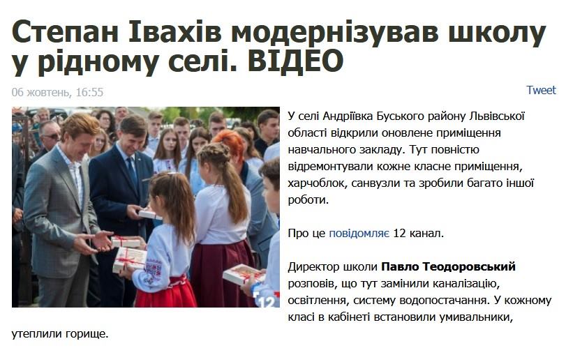 У новині на сайті ВолиньPost із заголовком «Степан Івахів модернізував школу у рідному селі. ВІДЕО» є ознаки замовності. У тексті зазначено таке: