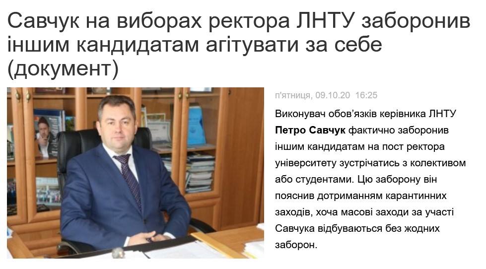 Інші три фейки стосувалися теми місцевих виборів. Зокрема, цілий цикл фейкових матеріалів на сайті «Під прицілом» стосується очільника Луцького національного університету Петра Савчука. Нагадаємо, незабаром у виші відбудуться чергові вибори ректора, де у Савчука є серйозні опоненти. А ще він балотується в обласну раду від партії «Слуга народу».