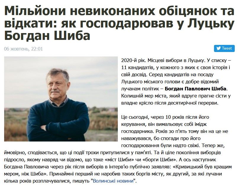 На сайті «ВолиньPost» у тексті із заголовком «Мільйони невиконаних обіцянок та відкати: як господарював у Луцьку Богдан Шиба» є перебільшення та маніпуляція. Бо невідомо, як журналісти рахували конкретно мільйони обіцянок.