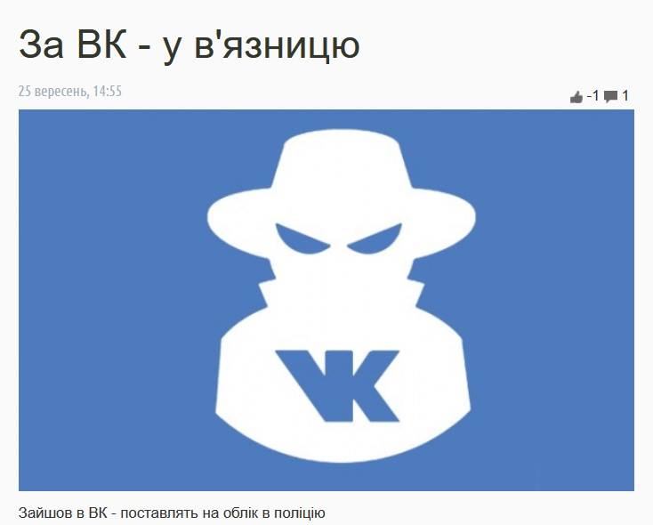 «За ВК у в’язницю» – заголовок, що може викликати бажання якомога швидше клікнути й прочитати це. У тексті на сайті »Волинь24» насправді йдеться про можливий облік користувачів соцмережі, а не про в’язницю. Зокрема, у новині посилаються на слова секретаря РНБО України Олексія Данилова. Він повідомив, що всіх бажаючих користуватися російськими ресурсами чекає облік в поліції. А також за допомогою іноземних партнерів соцмережа буде заблокована на території України. Однак із заголовку читачі можуть подумати, що за вхід у соціальну мережу Вконтакте можна сісти у в’язницю.