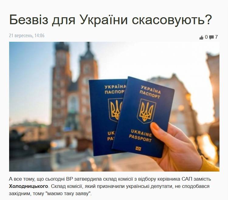 Крім загрози безвізу, під загрозою також транш в розмірі 1,5 млрд євро. У цій новині немає підтвердження фактами, що безвіз можуть скасувати. Окрім того, заголовок із знаком запитання, ніби журналісти самі не знали про що пишуть і як все може бути насправді. Завдання журналіста – це розібратися в ситуації, з’ясувати якомога більше інформації й поширити правду, що підтверджується фактами або якимось документом. А в даному випадку цього немає.