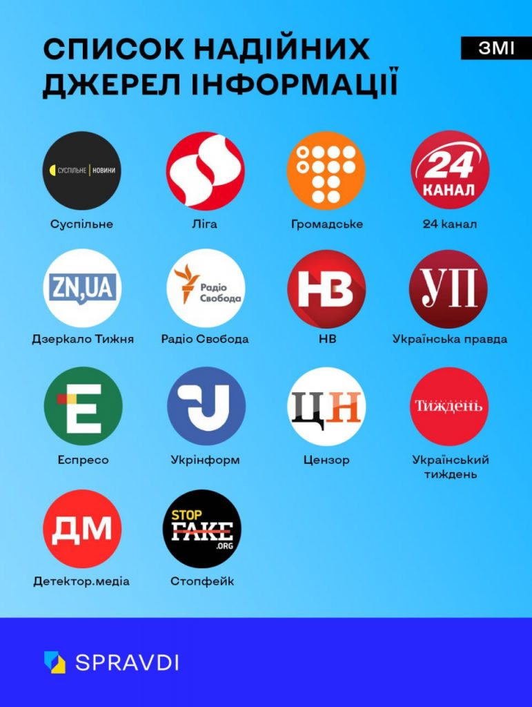 На національному рівні актуальний список якісних медіа оприлюднює Центр стратегічних комунікацій, створений при Міністерстві культури та інформаційної політики України. Станом на 10 жовтня до нього увійшли «Суспільне», «Ліга», «Громадське», 24 канал, «Дзеркало тижня», «Радіо Свобода», «НВ», «Українська правда», «Еспресо», «Укрінформ», «Цензор», «Український тиждень», «Детектор.Медіа», «Стопфейк».