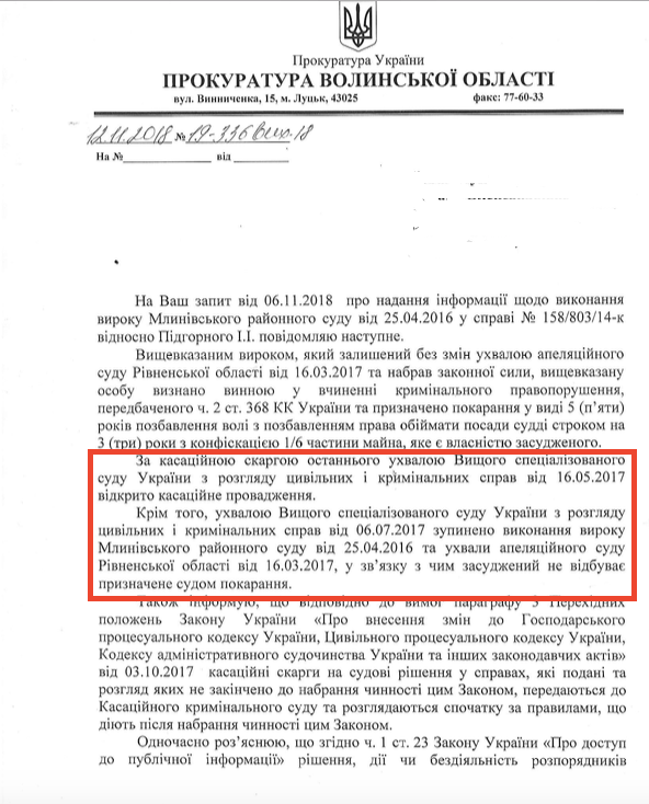 Раніше журналісти «Сили правди» зверталися до Вищої кваліфікаційної комісії суддів та Вищої ради правосуддя з проханням перевірити законність поновлення Івана Підгорного на посаді судді Ківерцівського районного суду. Вища рада правосуддя скаргу залишила без розгляду, а от у ВККС повідомили, що можуть врахувати наведені відомості під час кваліфікаційного оцінювання.