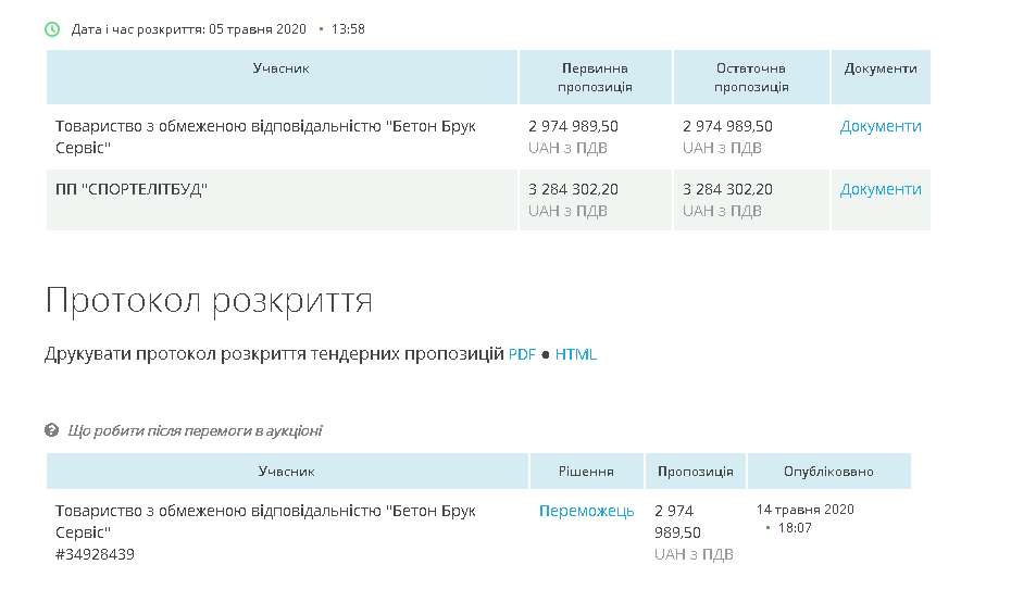 Інформація про це розміщена у системі публічних закупівель «Prozorro».
