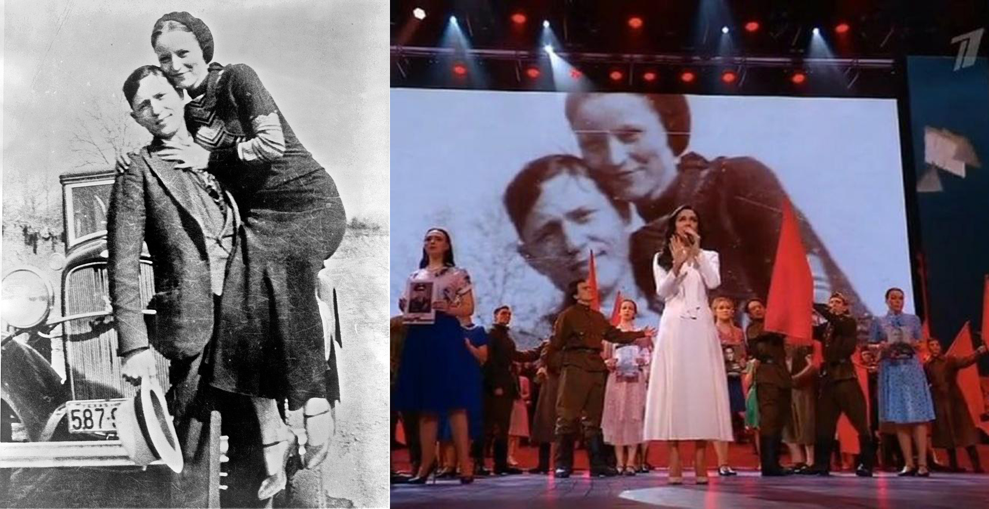 Зовсім нещодавно світ обійшли фото зі святкування Дня Перемоги в москві. На головному пропагандистському «1 каналі» росії транслювали великий концерт і серед світлин жертв Другої світової (яку рашисти продовжують називати великою вітчизняною) було зображення відомих американських грабіжників Бонні Паркер і Клайда Берроу.