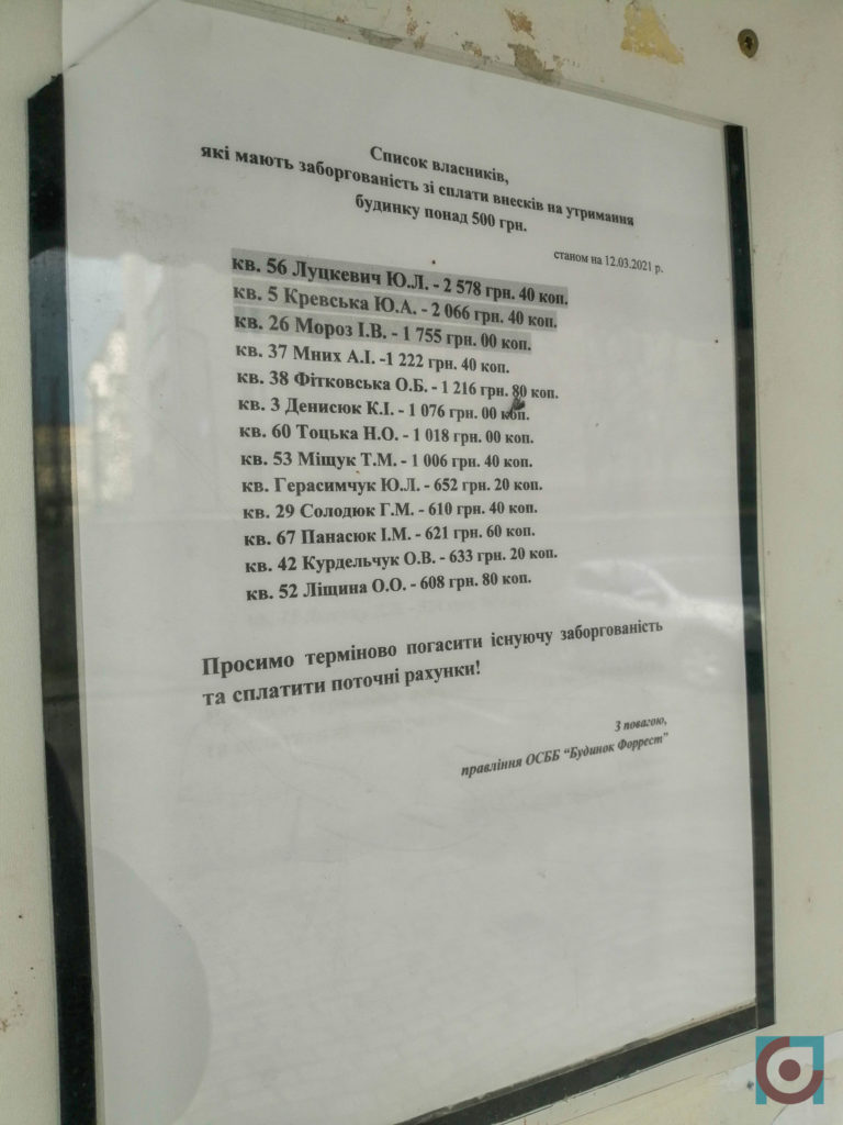 Те, що квартирою володіють Кревські, підтверджує і список власників квартир, які мають борги за утримання будинку. Згідно з ним, Кревська Ю.А. (Юлія Алімівна, — авт.) боргує 2 066 гривень.
