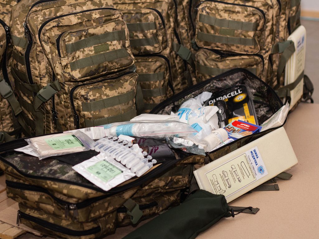 Крім аптечок у центрі формують унікальні тактичні наплічники для військових медиків, які розраховані для порятунку від 10 до 40 поранених. Це – вдалий варіант для бойового медичного працівника, завдання якого – терміново надати невідкладну допомогу. З лютого бойові медики отримали майже тисячу таких наплічників.