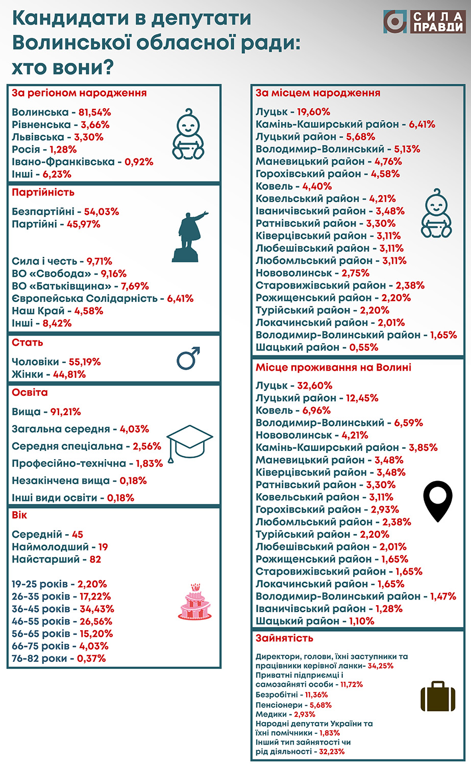 Центр журналістських розслідувань «Сила правди» проаналізував списки кандидатів в депутати від усіх політичних партій до Волинської обласної ради на місцевих виборах 2020 року.