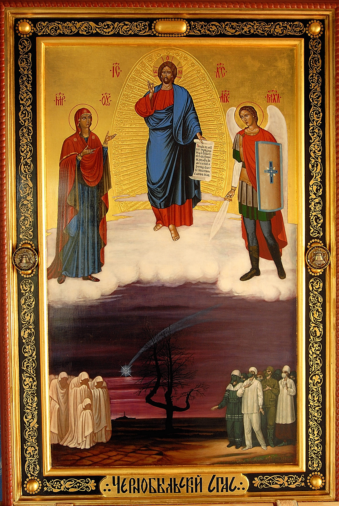 У мережі можна знайти інформацію, що написання ікони під назвою «Чорнобильський спас» ініціювала Всeукрaїнськa громадська організація «Сoюз Чорнoбиль Укрaїнa».
