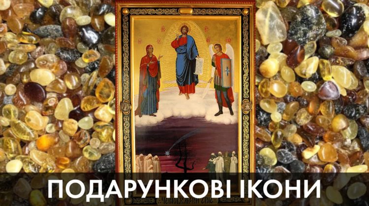 На іконах з бурштину – зображення «Чорнобильського спасу», розповіли у департаменті. «Чорнобильський спас» зображує святих та учасників ліквідації наслідків аварії на ЧАЕС. Святі охороняють живих ліквідаторів аварії та душі їхніх спочилих побратимів.