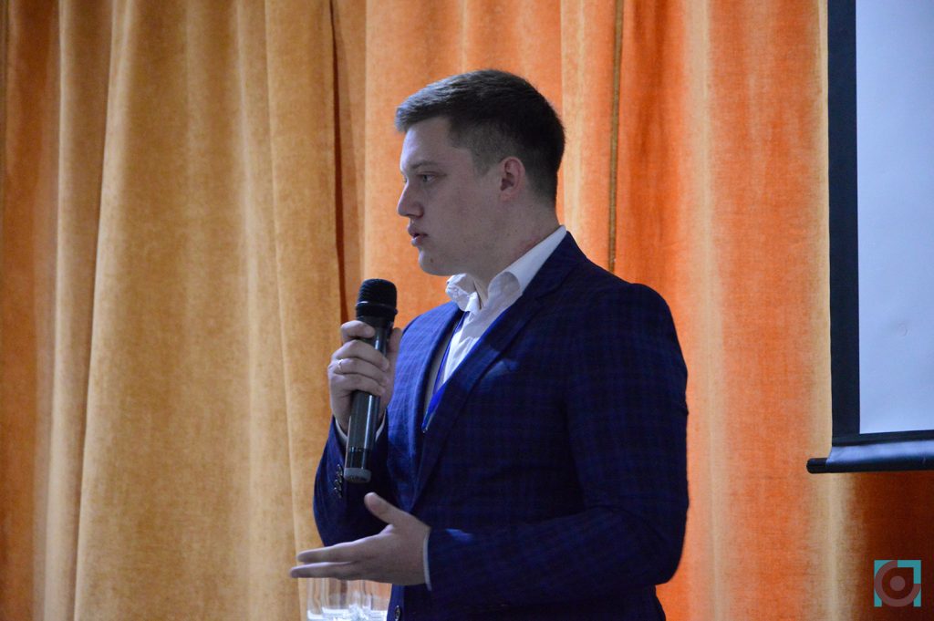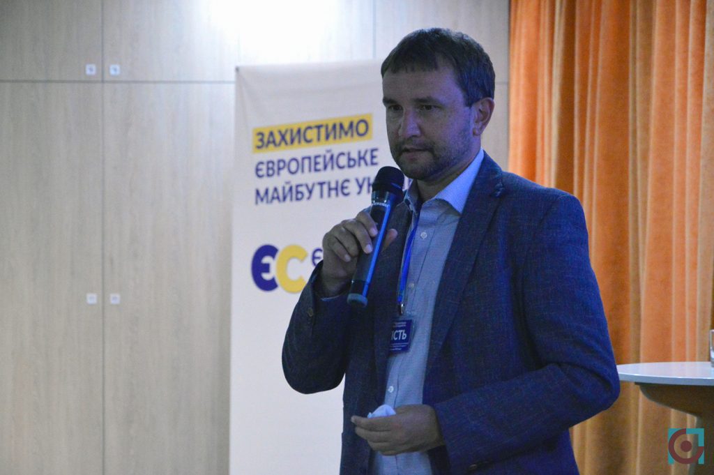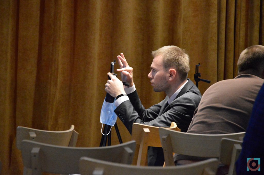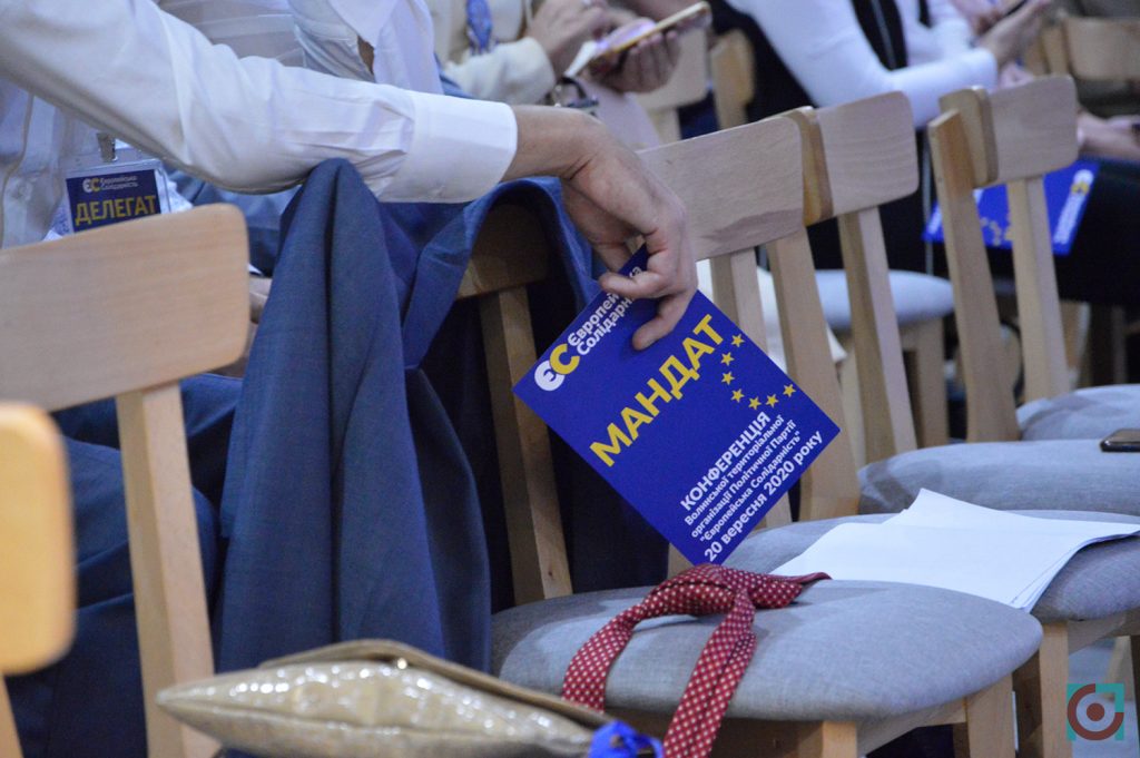 На відміну від решти партій, конференції яких політики проводили самостійно, ЄС цю місію доручила ведучому. Спочатку він оголошує гостей та учасників конференції, періодично кидає натхненні патріотичні фрази, говорить про «зелену монобільшість», а потім просто випадає з поля зору, коли його роль поступово перебирає на себе виконувачка обов’язків голови волинської «Європейської Солідарності» Юлія Вусенко.